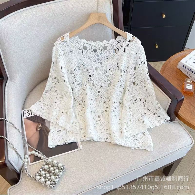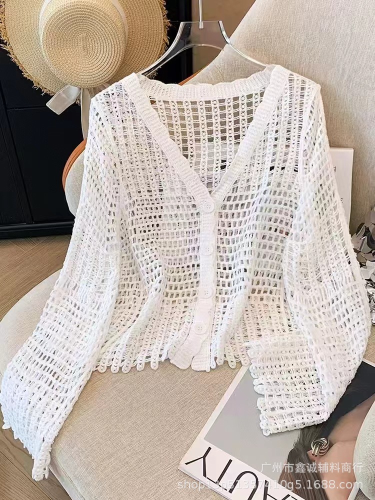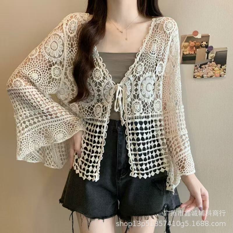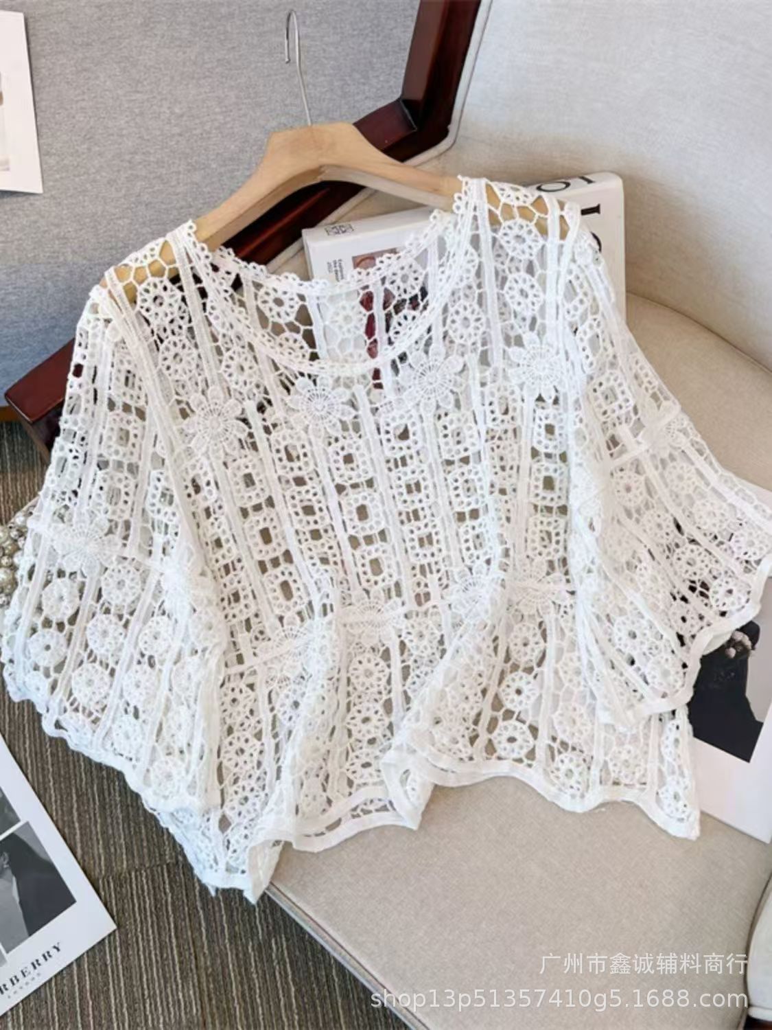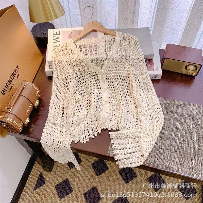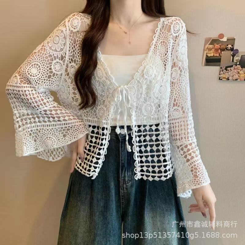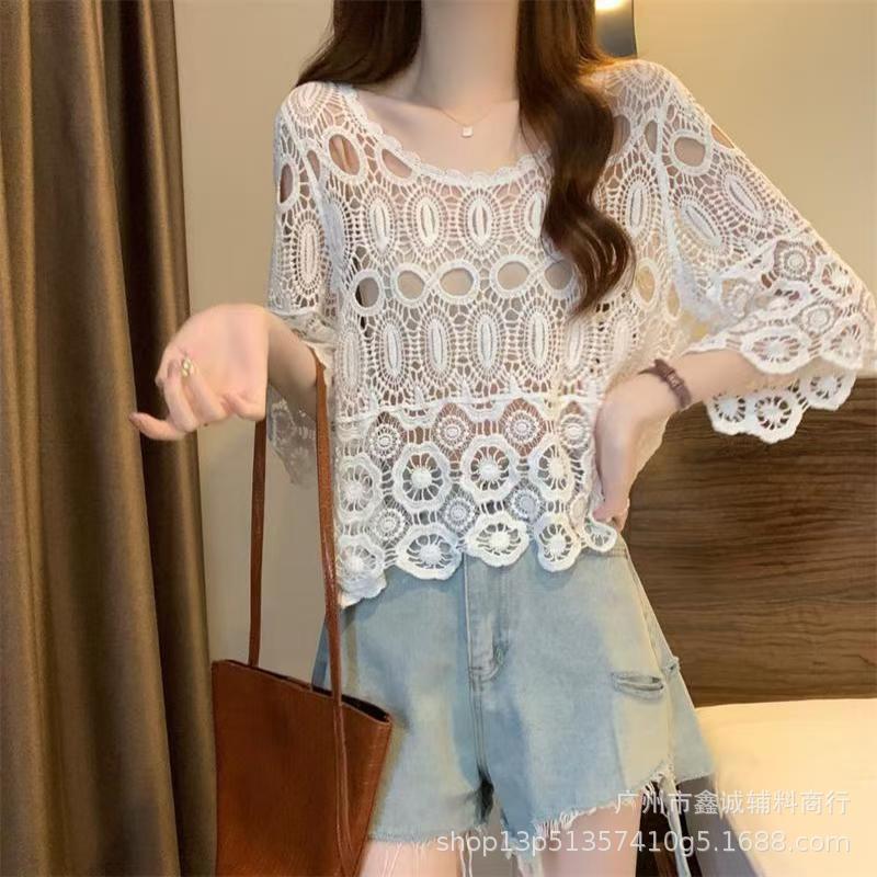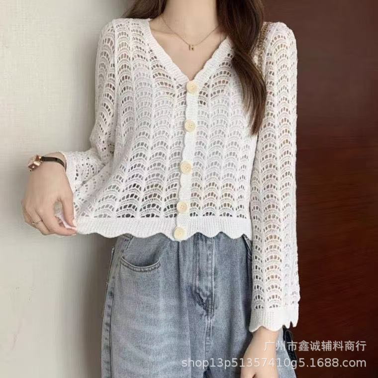 신상 반팔 한국 스타일 레이스 카디건 니트 패션 다용도 슬림핏 캐주얼 탑