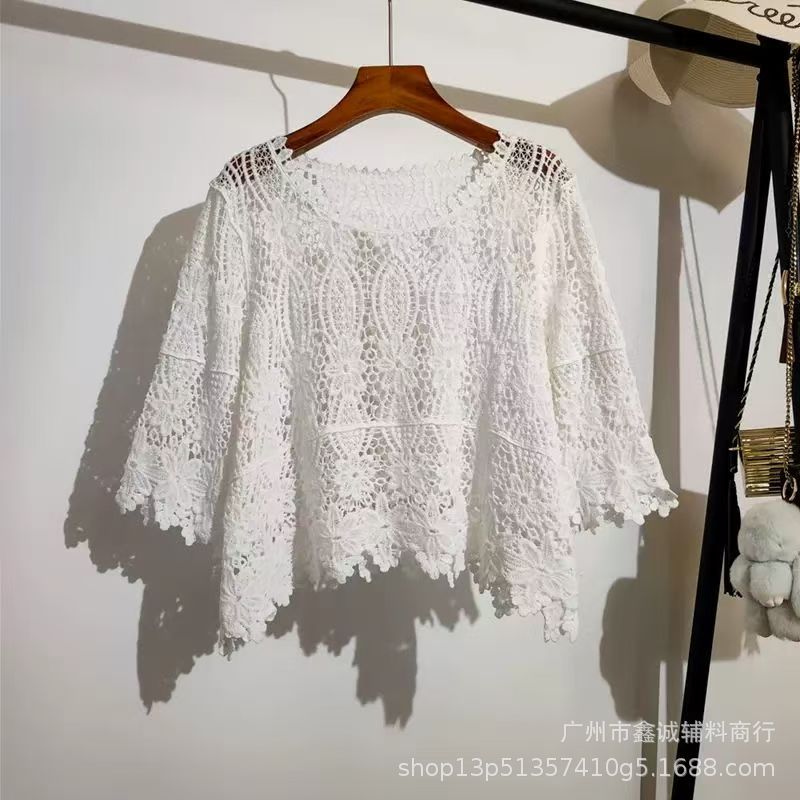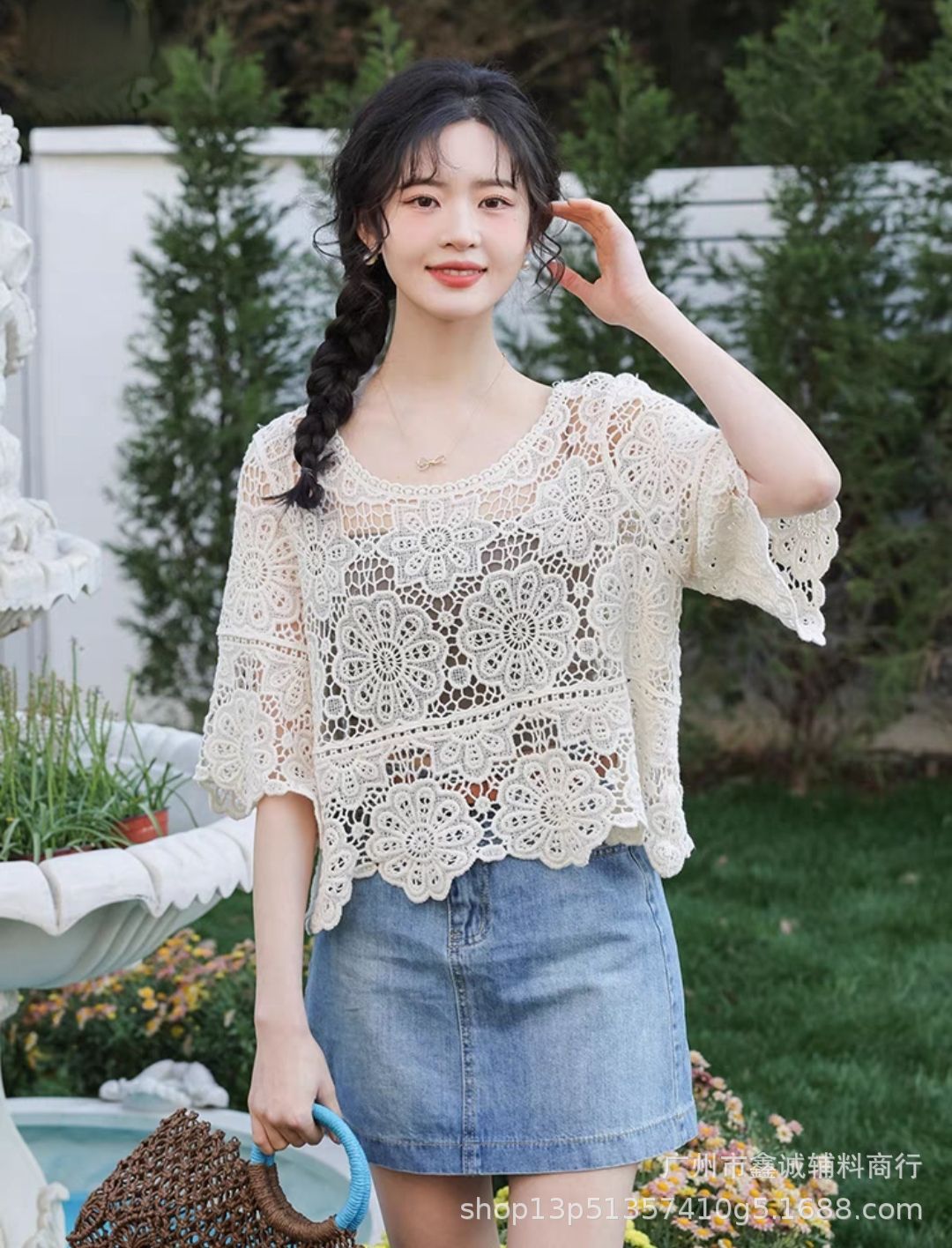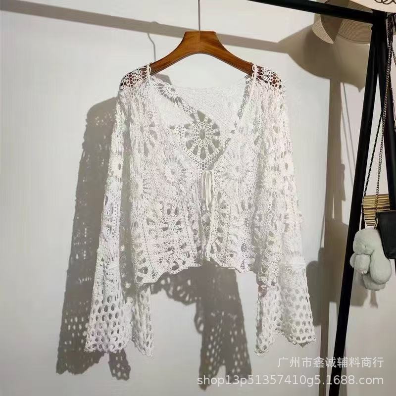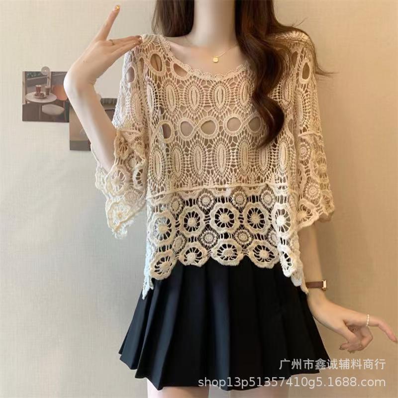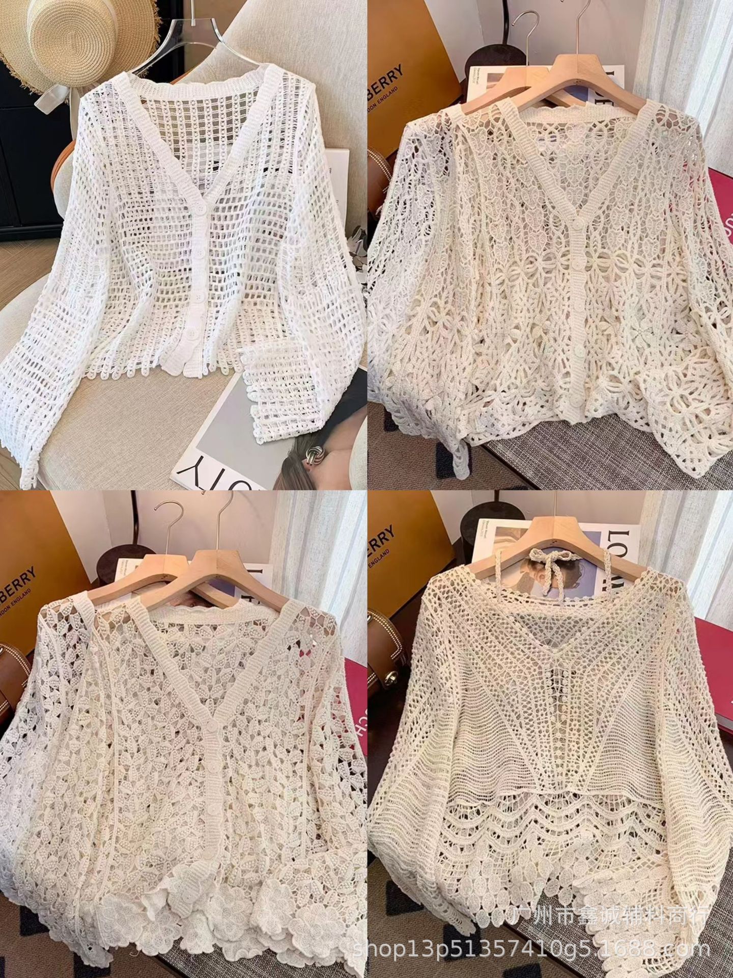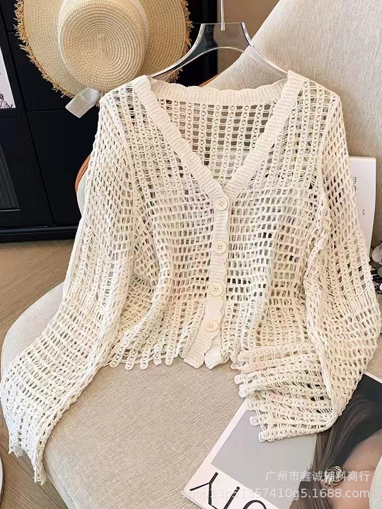 신상 반팔 한국 스타일 레이스 카디건 니트 패션 다용도 슬림핏 캐주얼 탑