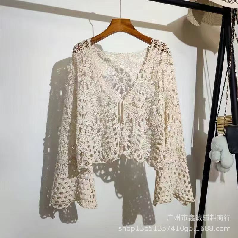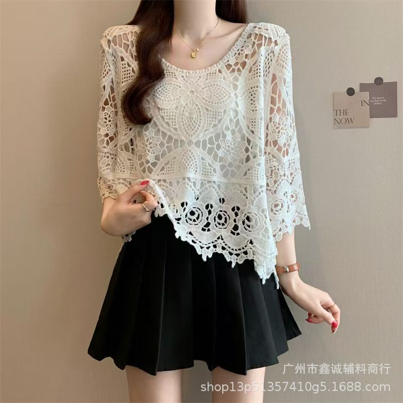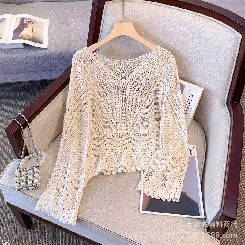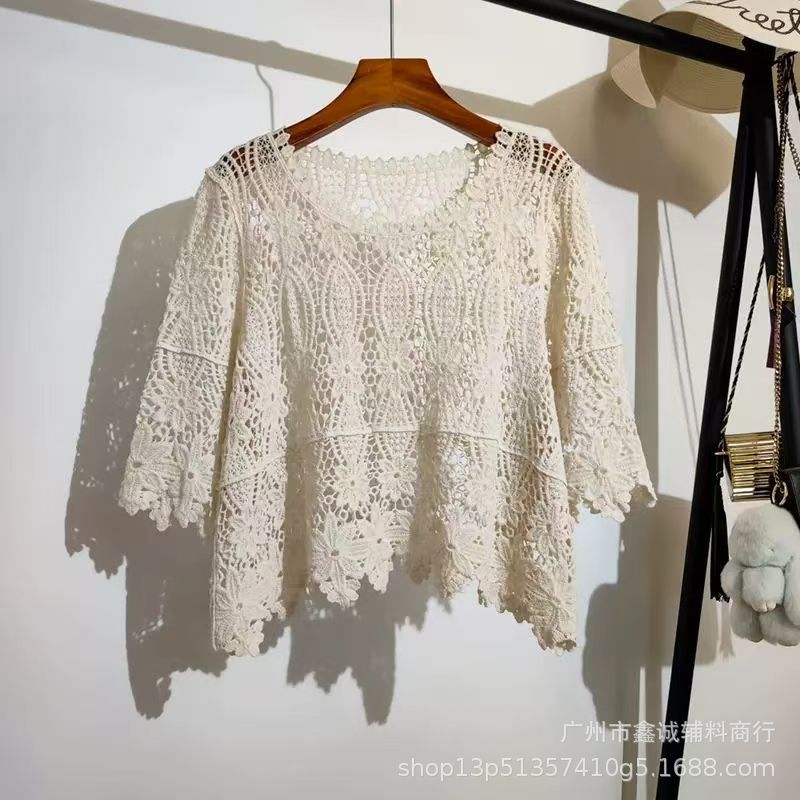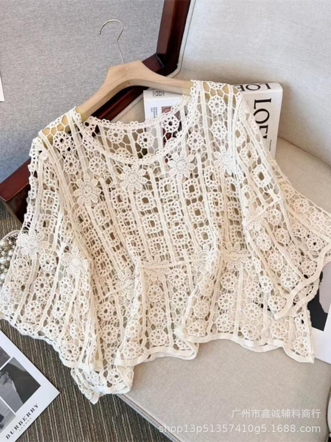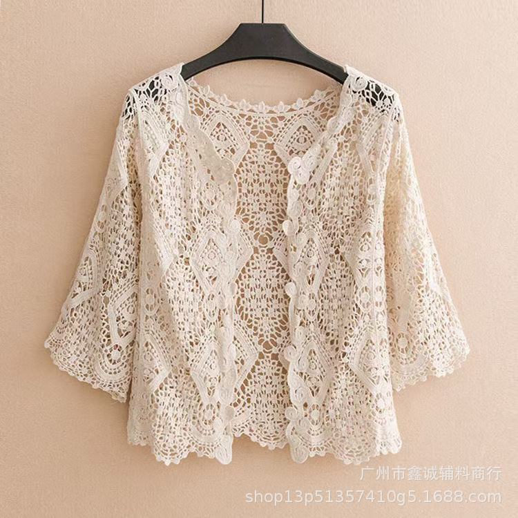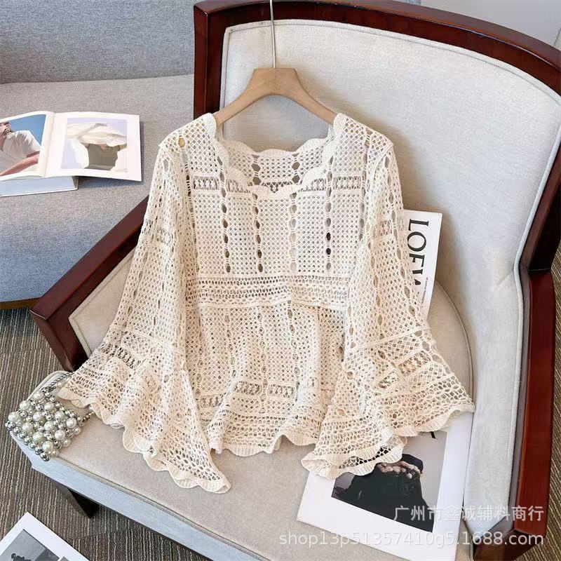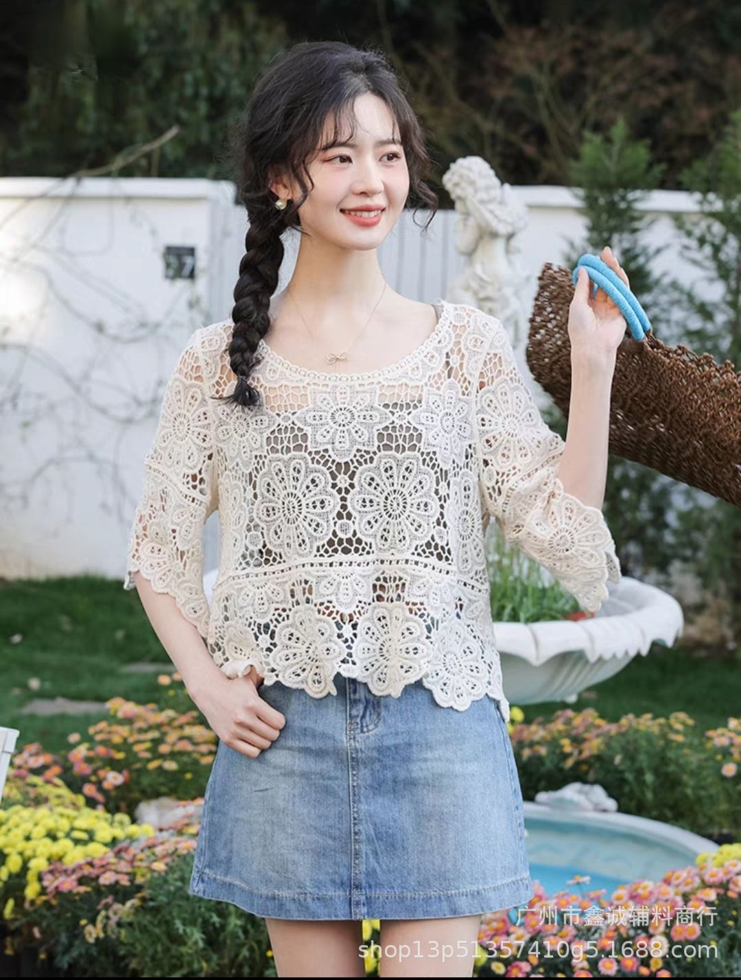 신상 반팔 한국 스타일 레이스 카디건 니트 패션 다용도 슬림핏 캐주얼 탑