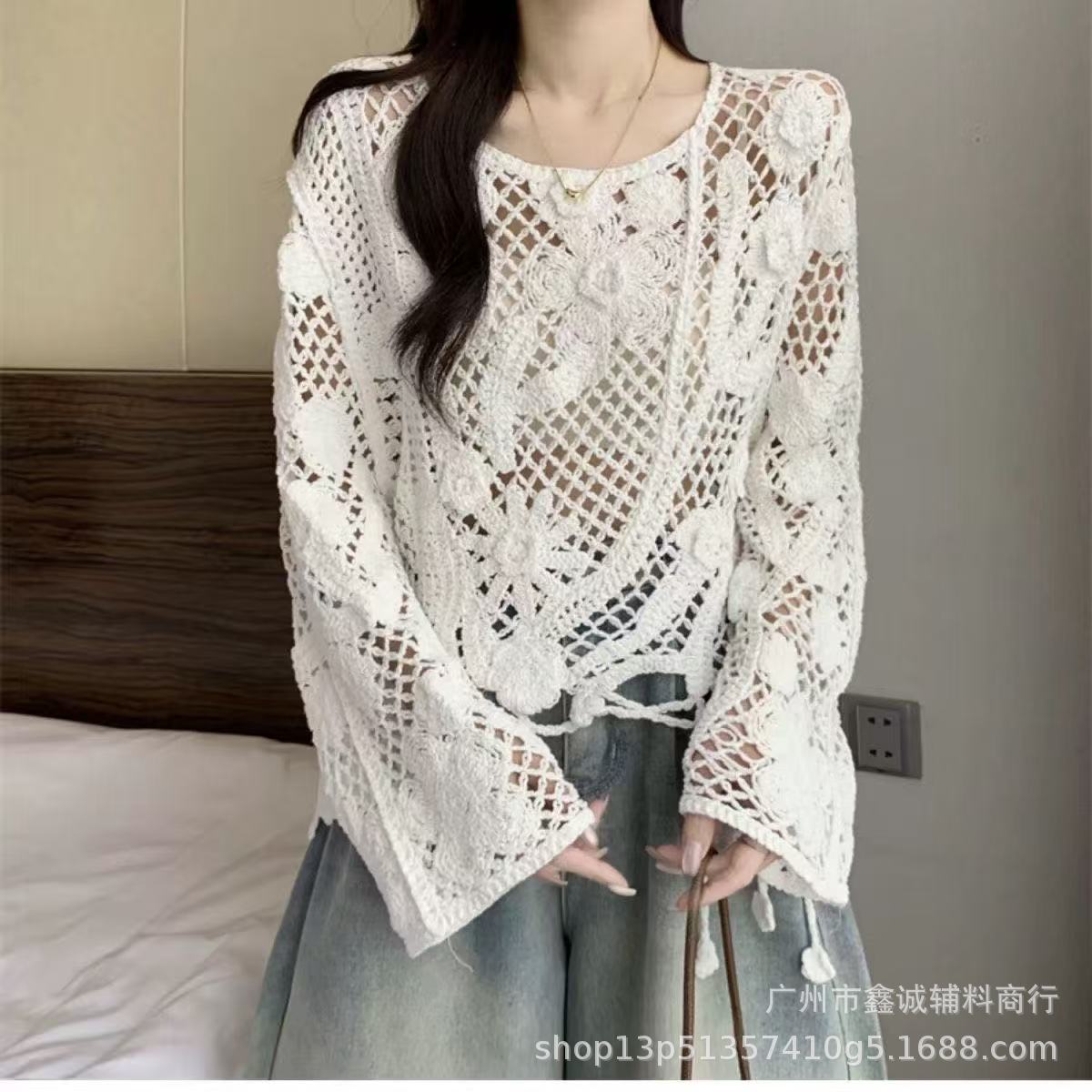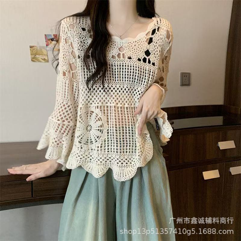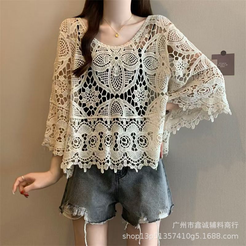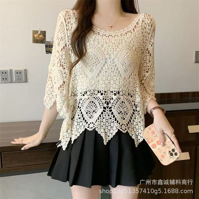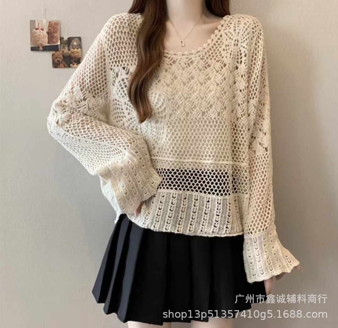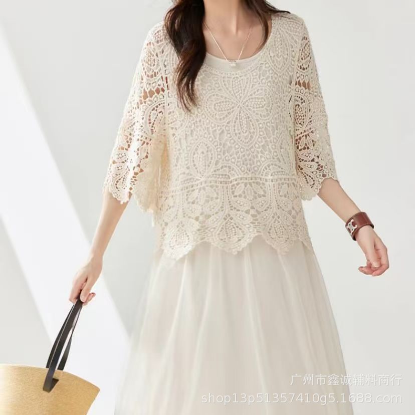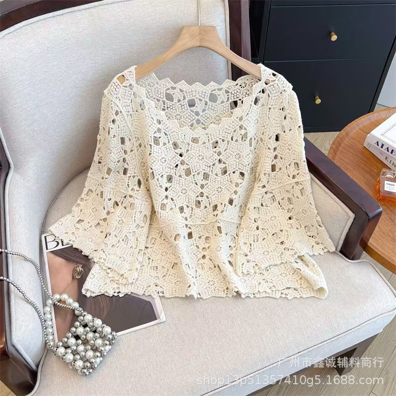 신상 반팔 한국 스타일 레이스 카디건 니트 패션 다용도 슬림핏 캐주얼 탑