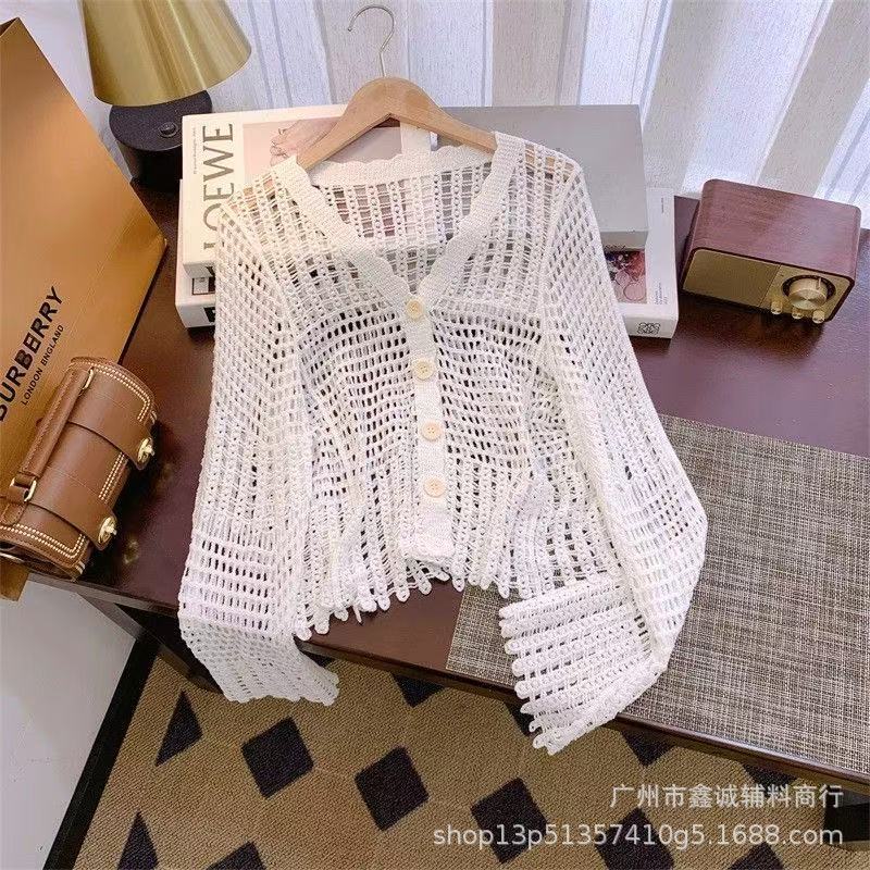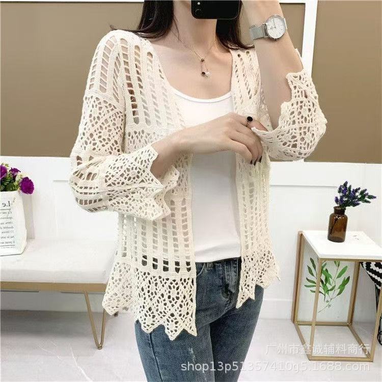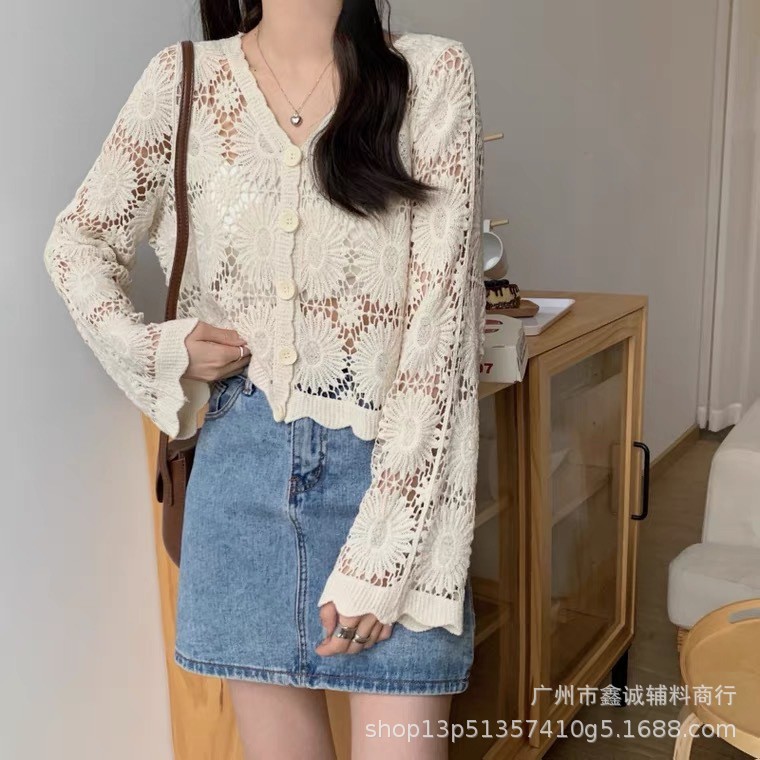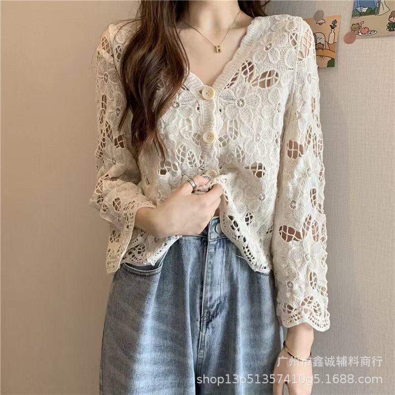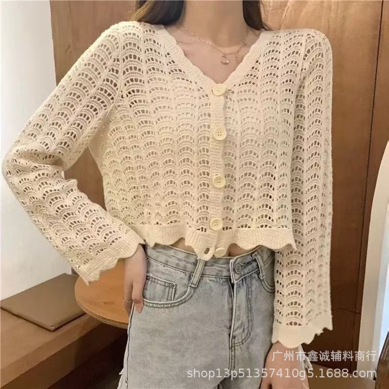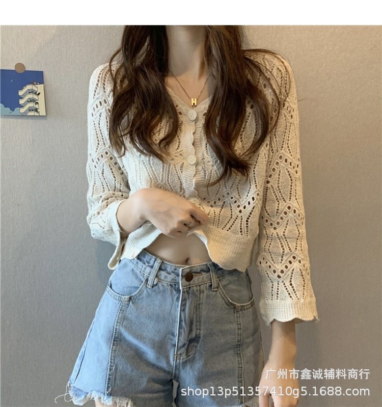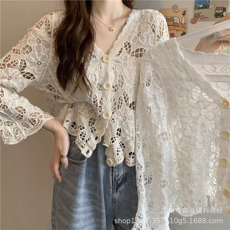 신상 반팔 한국 스타일 레이스 카디건 니트 패션 다용도 슬림핏 캐주얼 탑스토어 가기