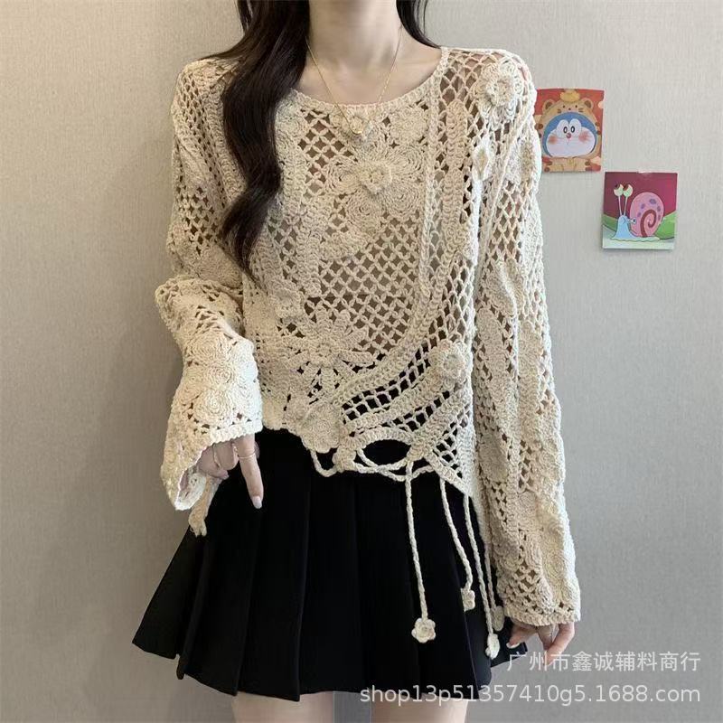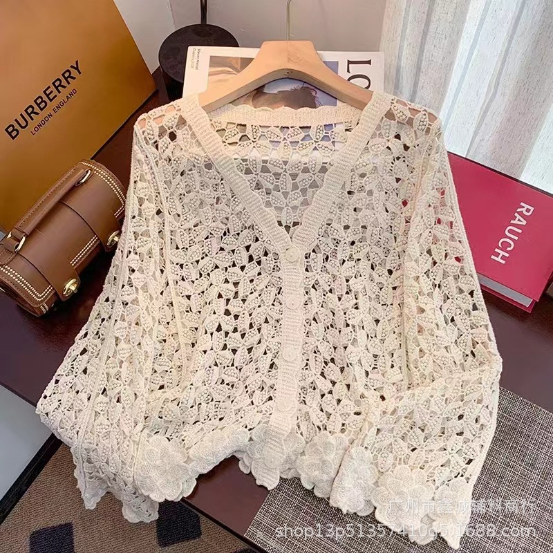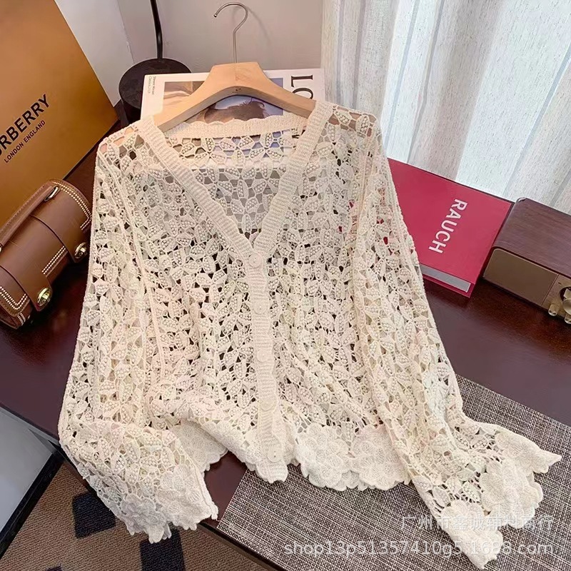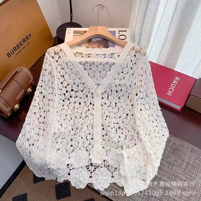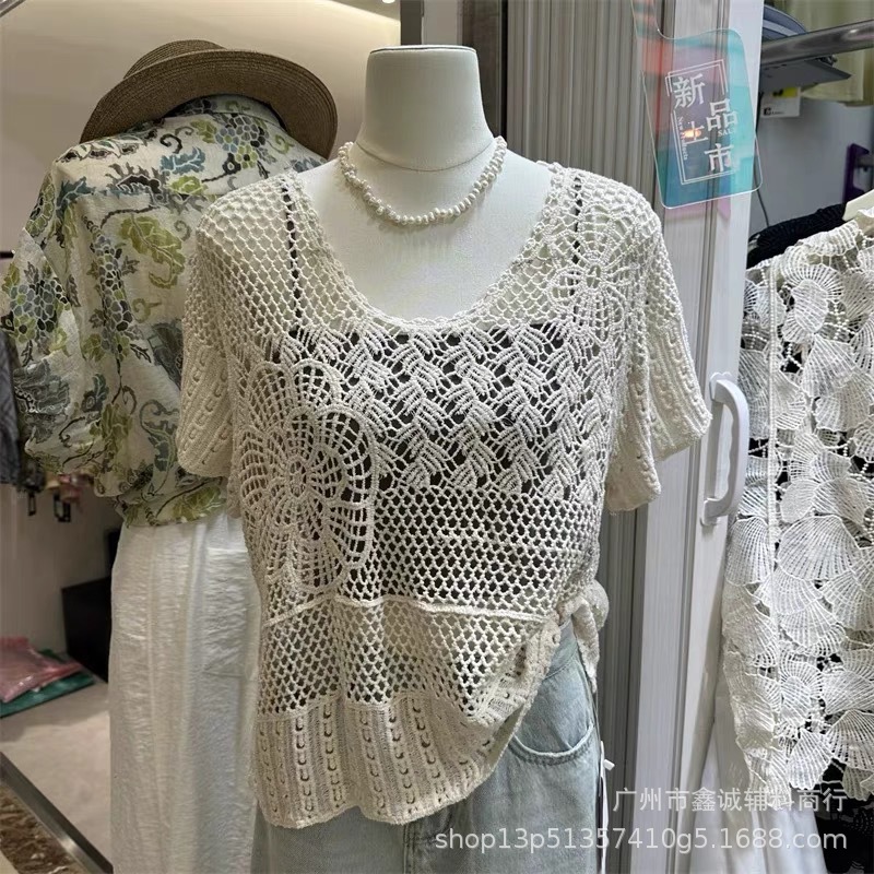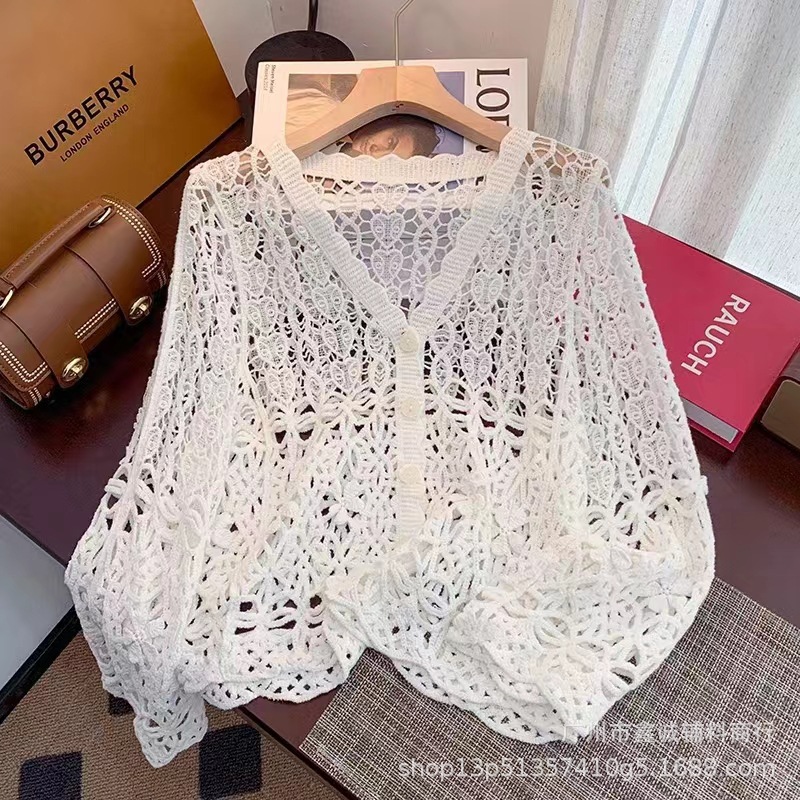신상 반팔 한국 스타일 레이스 카디건 니트 패션 다용도 슬림핏 캐주얼 탑스토어 가기