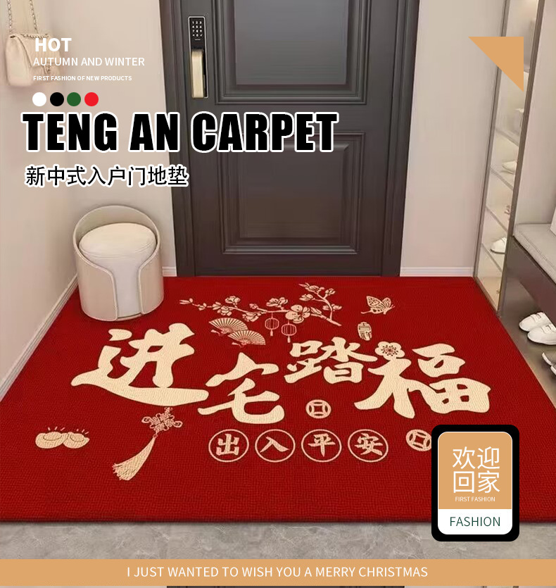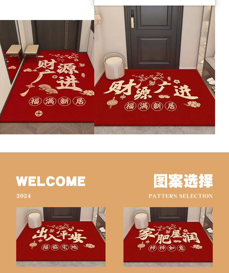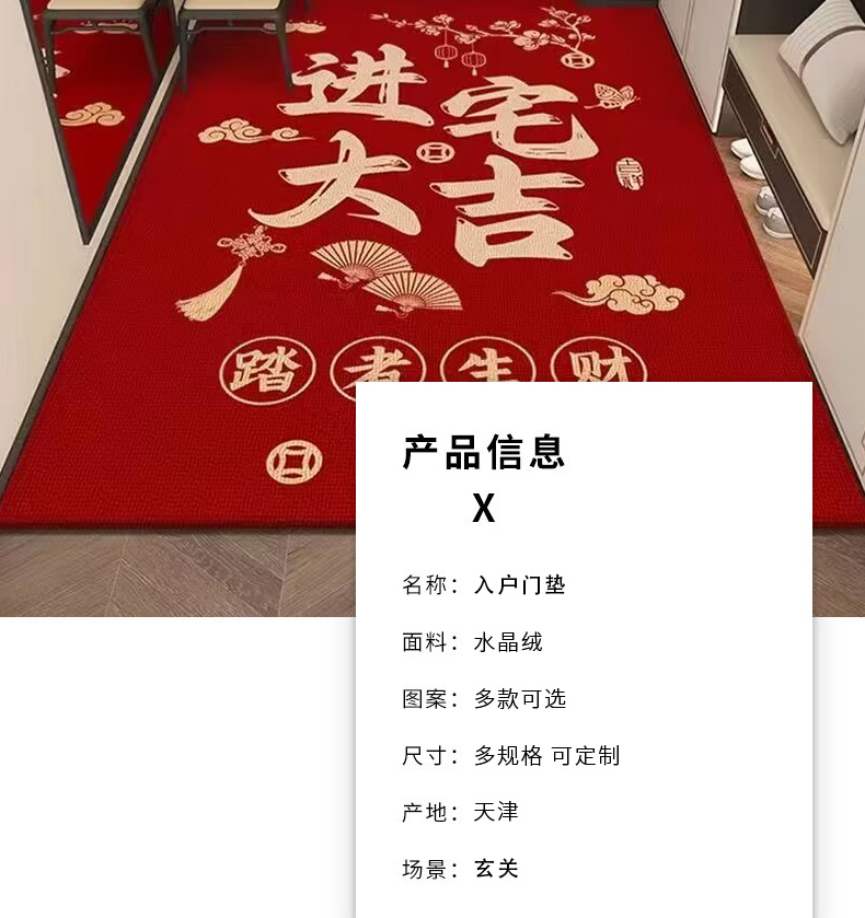 새로운 중국 스타일 입구 문 매트 홈 입구 미끄럼 방지 발 매트 새해 루킹 크리스탈 벨벳 바닥 매트 축하 및 축하 문 매트스토어 가기