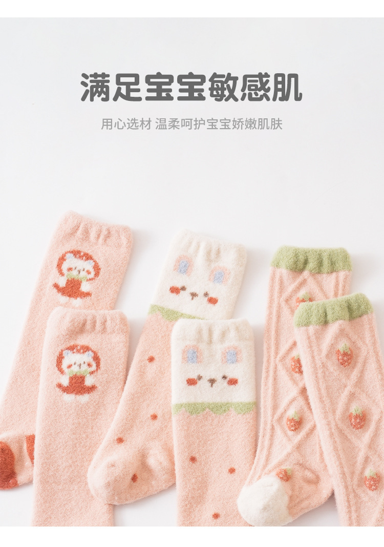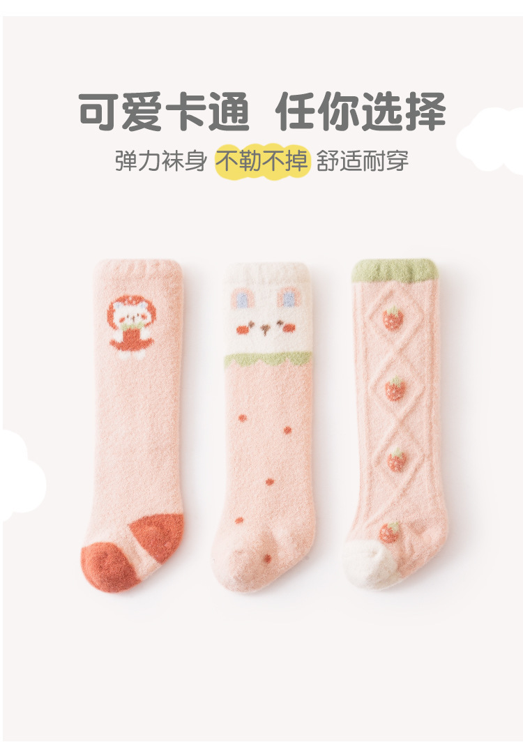 3 쌍의 아기 양말 가을과 겨울 테리 두껍게 스타킹 신생아 아기 뼈없는 미끄럼 방지 분배 바닥 양말