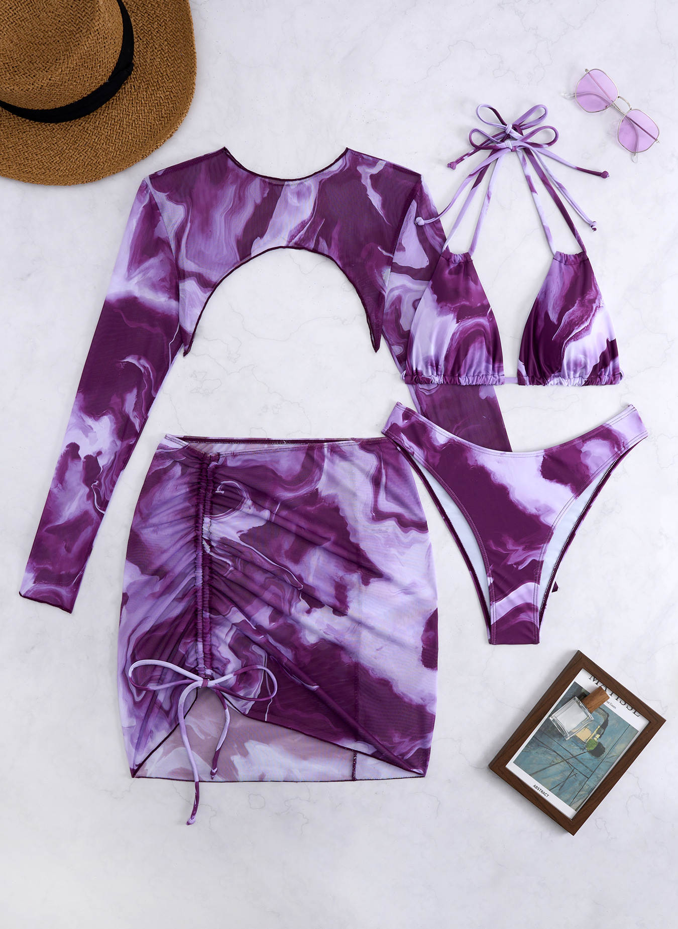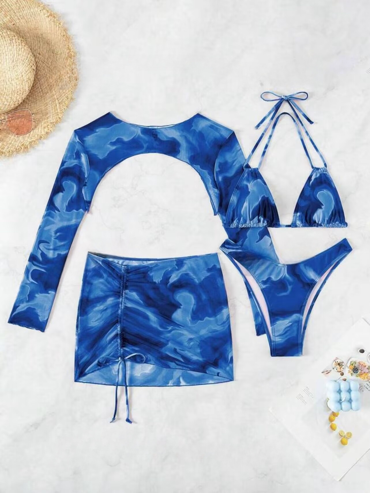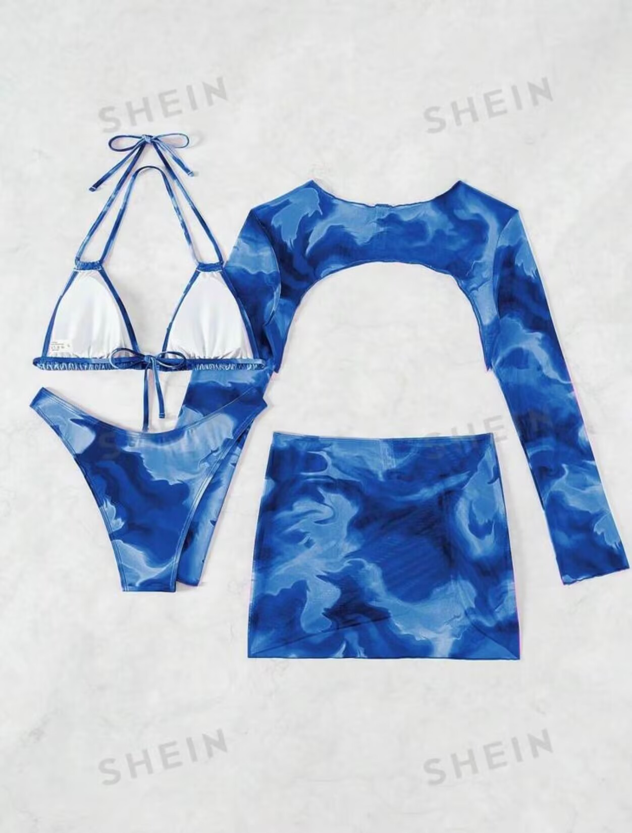 2024 국경을 넘는 유럽과 미국의 섹시한 다채로운 4 피스 분할 비키니 알리익스프레스 아마존 소원 폭발 수영복스토어 가기