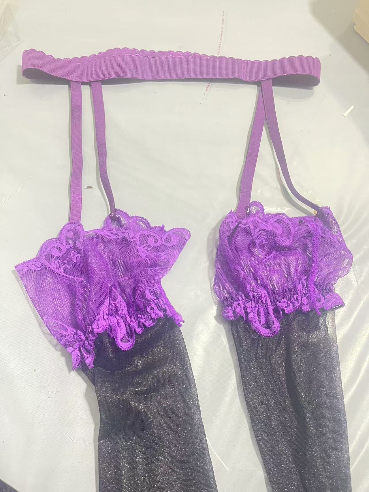 보라색 서스펜더 오일리 스타킹, 사랑스러운 자수 레이스, 보라색 원피스 오일리 스타킹, 대행