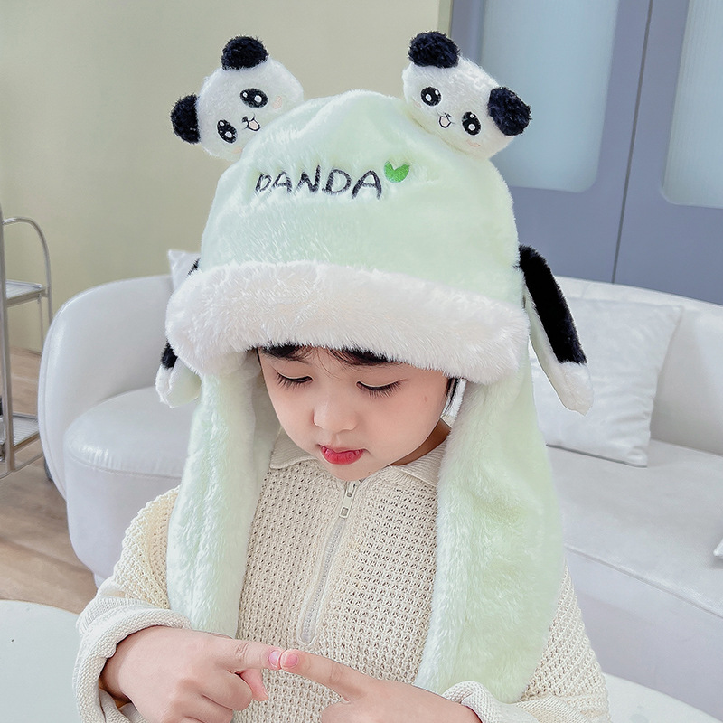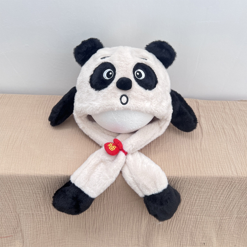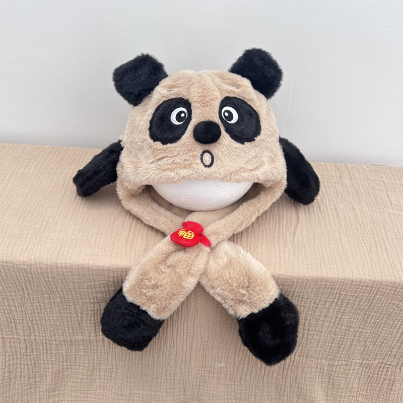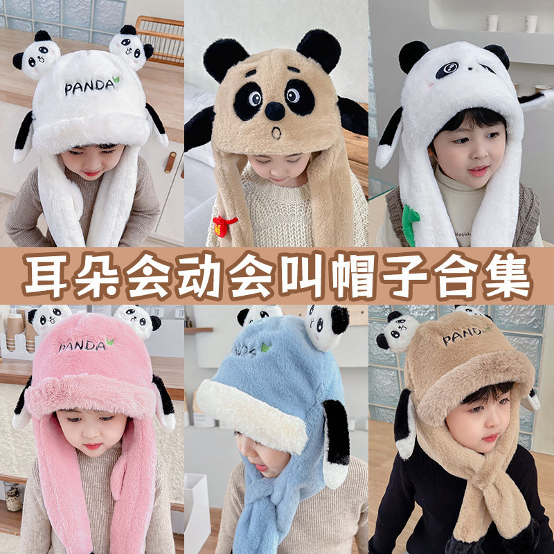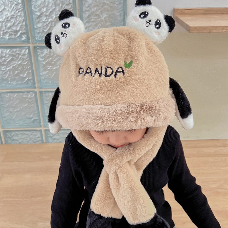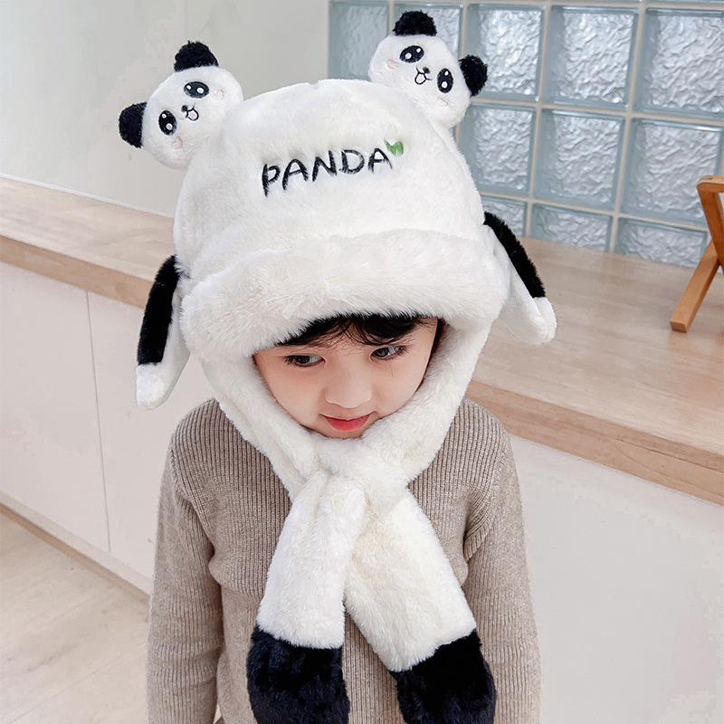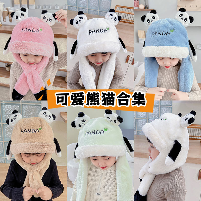 자이언트 팬더 모자와 스카프 통합 어린이 어린 소년 아기의 귀 이동 기모 두꺼운 가을과 겨울 목스토어 가기