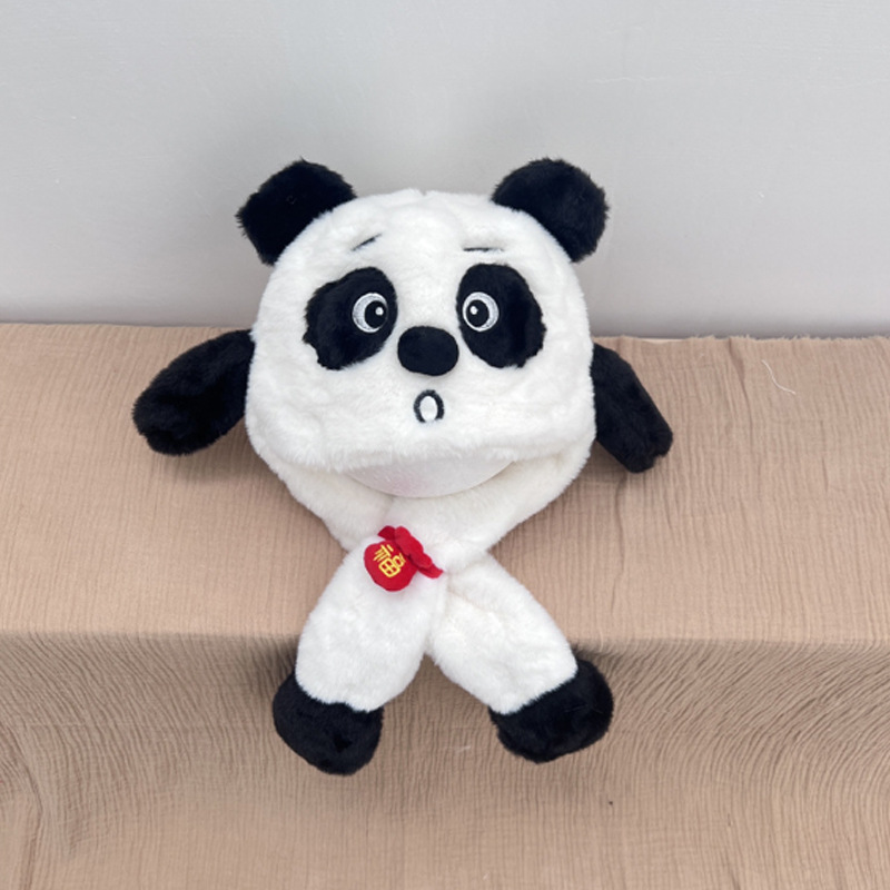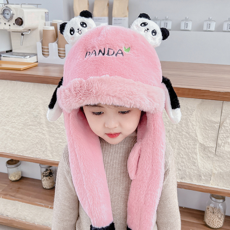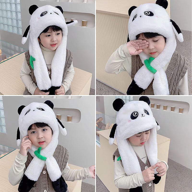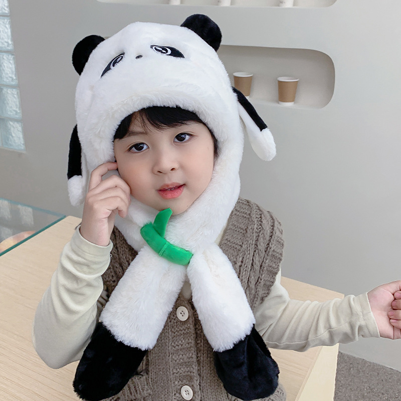 자이언트 팬더 모자와 스카프 통합 어린이 어린 소년 아기의 귀 이동 기모 두꺼운 가을과 겨울 목