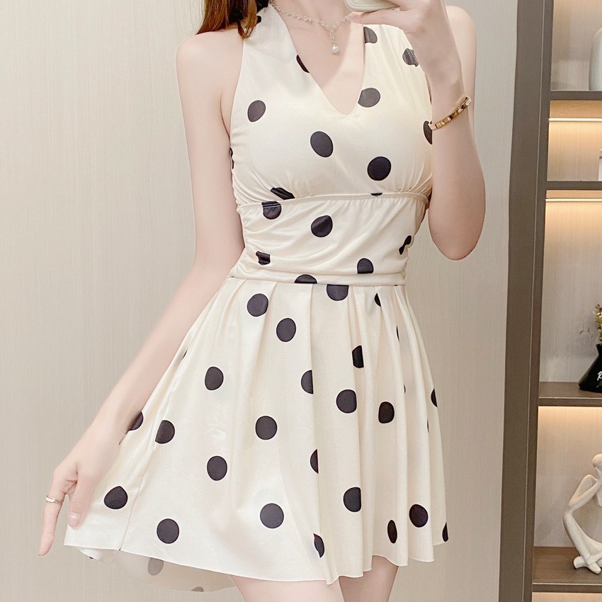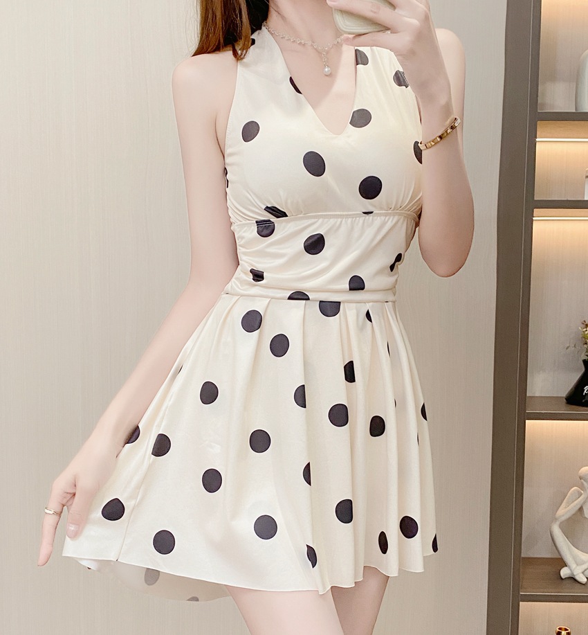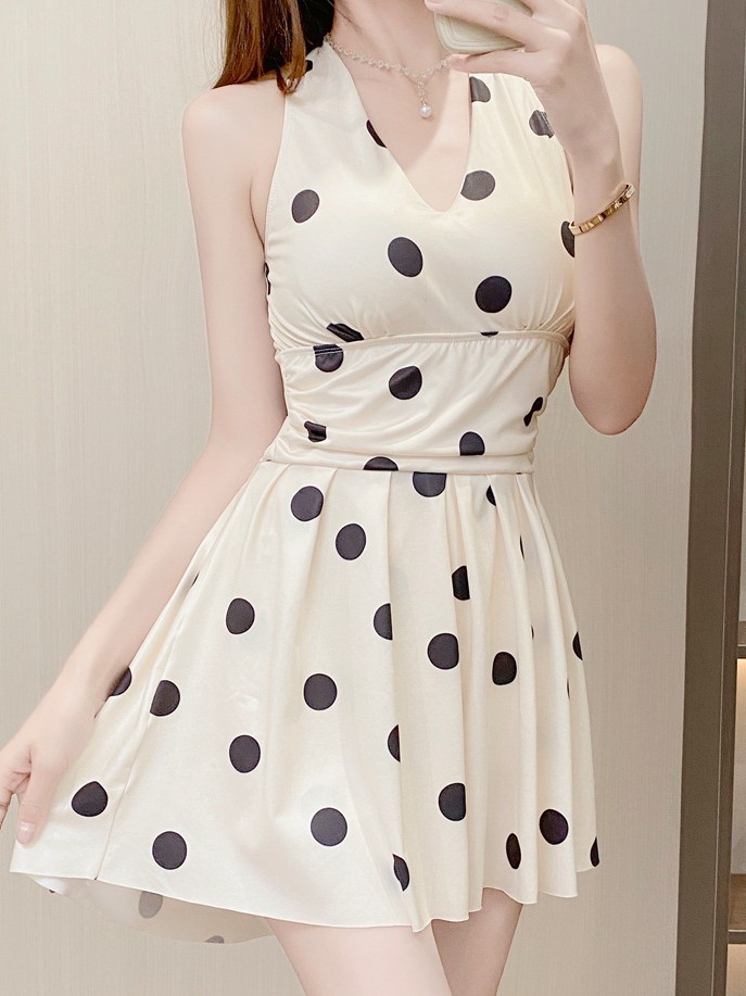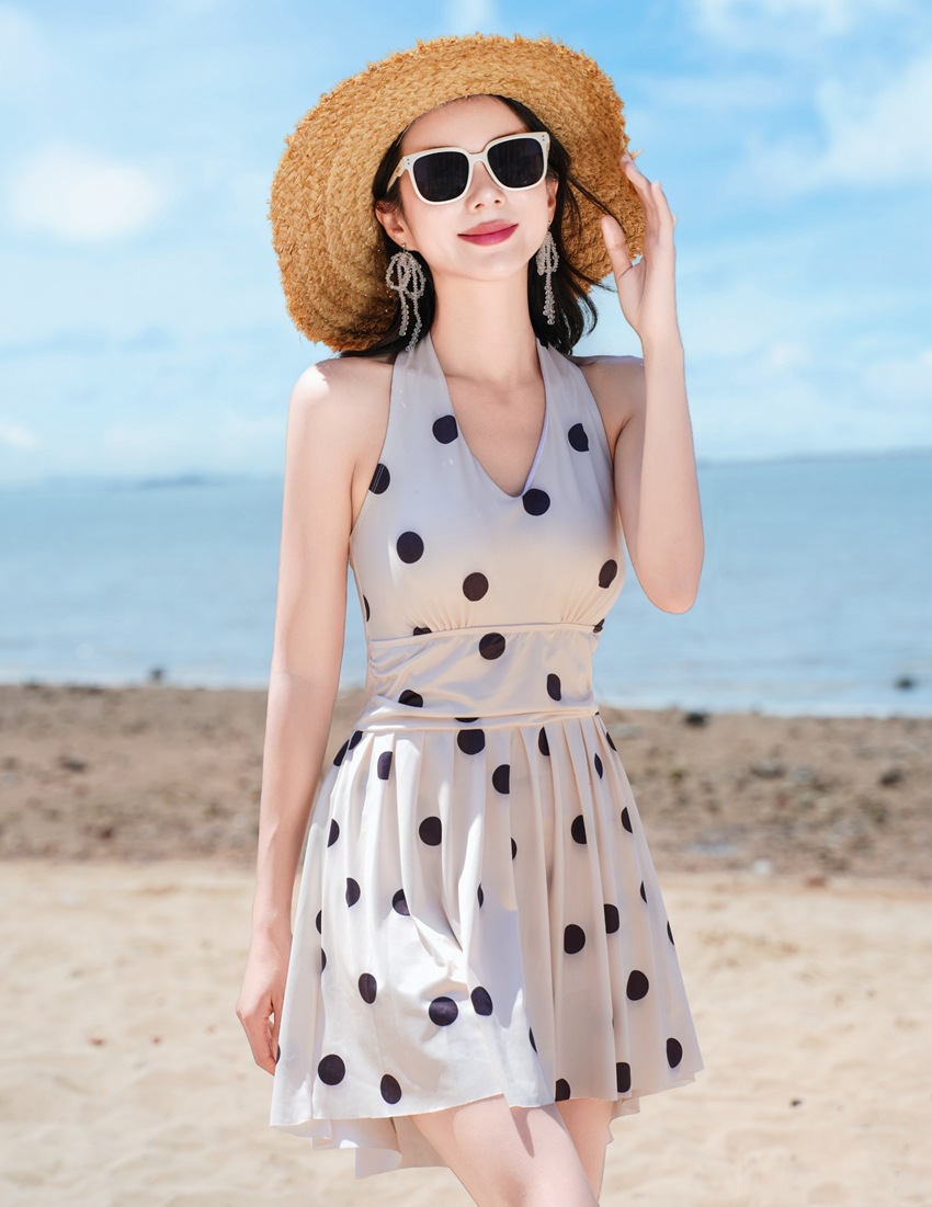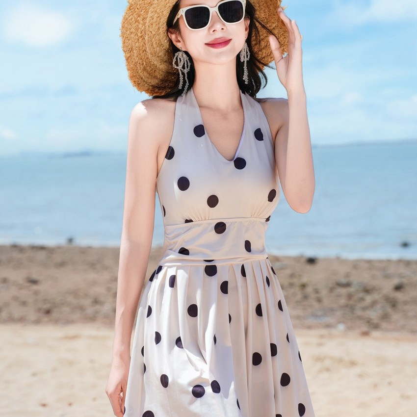 프랑스 스타일 헵번 스타일 퓨어, 웨이브 포인트 넥 원피스 수영복 여성용 여름 섹시한 백리스 휴가 수영복
