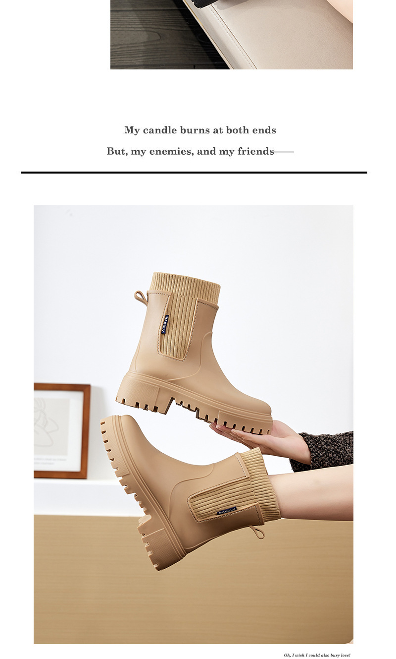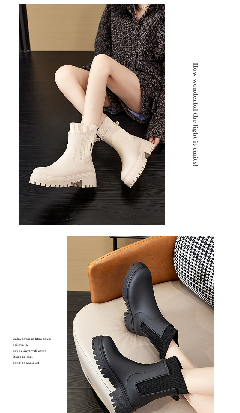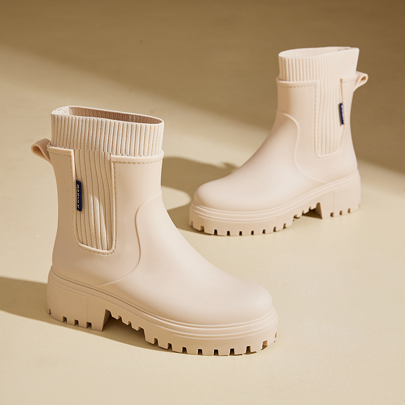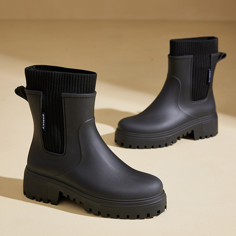 여성용 탄성 미드 튜브 장화 첼시 방수 미끄럼 방지 내마모성 레인 부츠 야외 통근 캠핑 여성용 장화스토어 가기