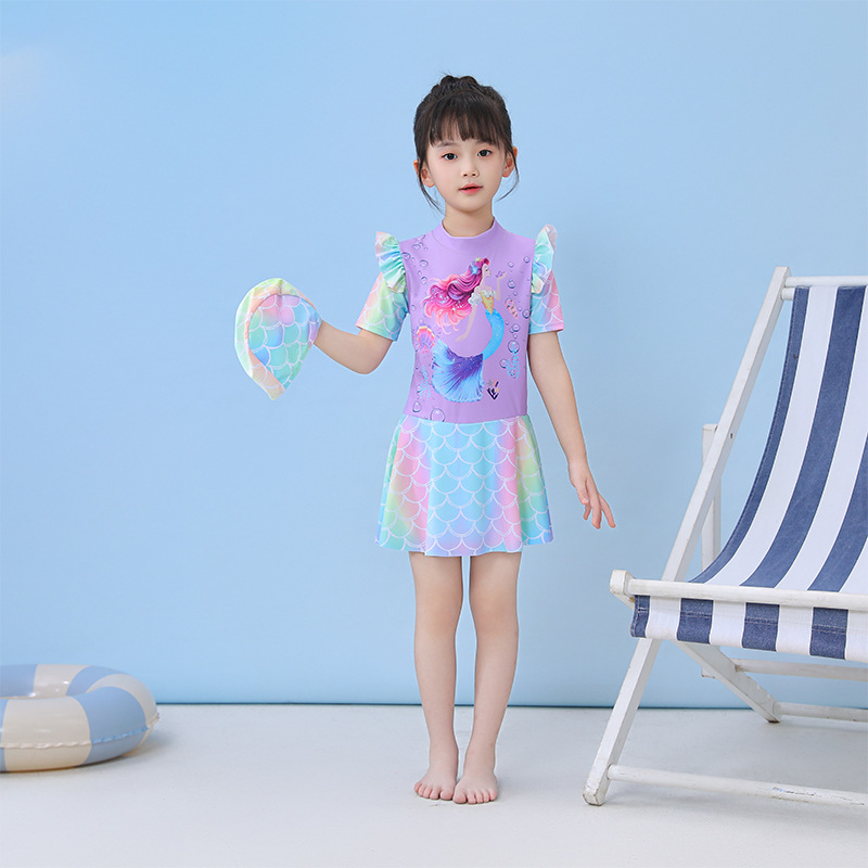 어린이 수영복 소녀의 2024 년 새 여름 선 스크린 수영복 소녀의 큰 아이 귀여운 공주 수영복