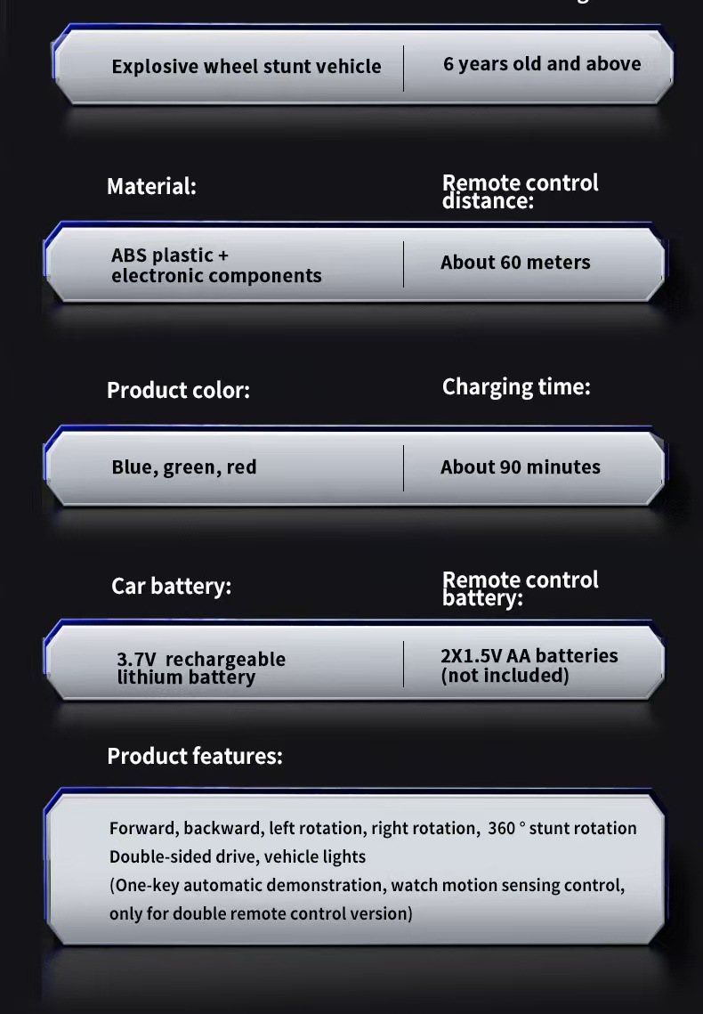 产品重量:单遥控530g/双遥控563g【包含彩盒包装】