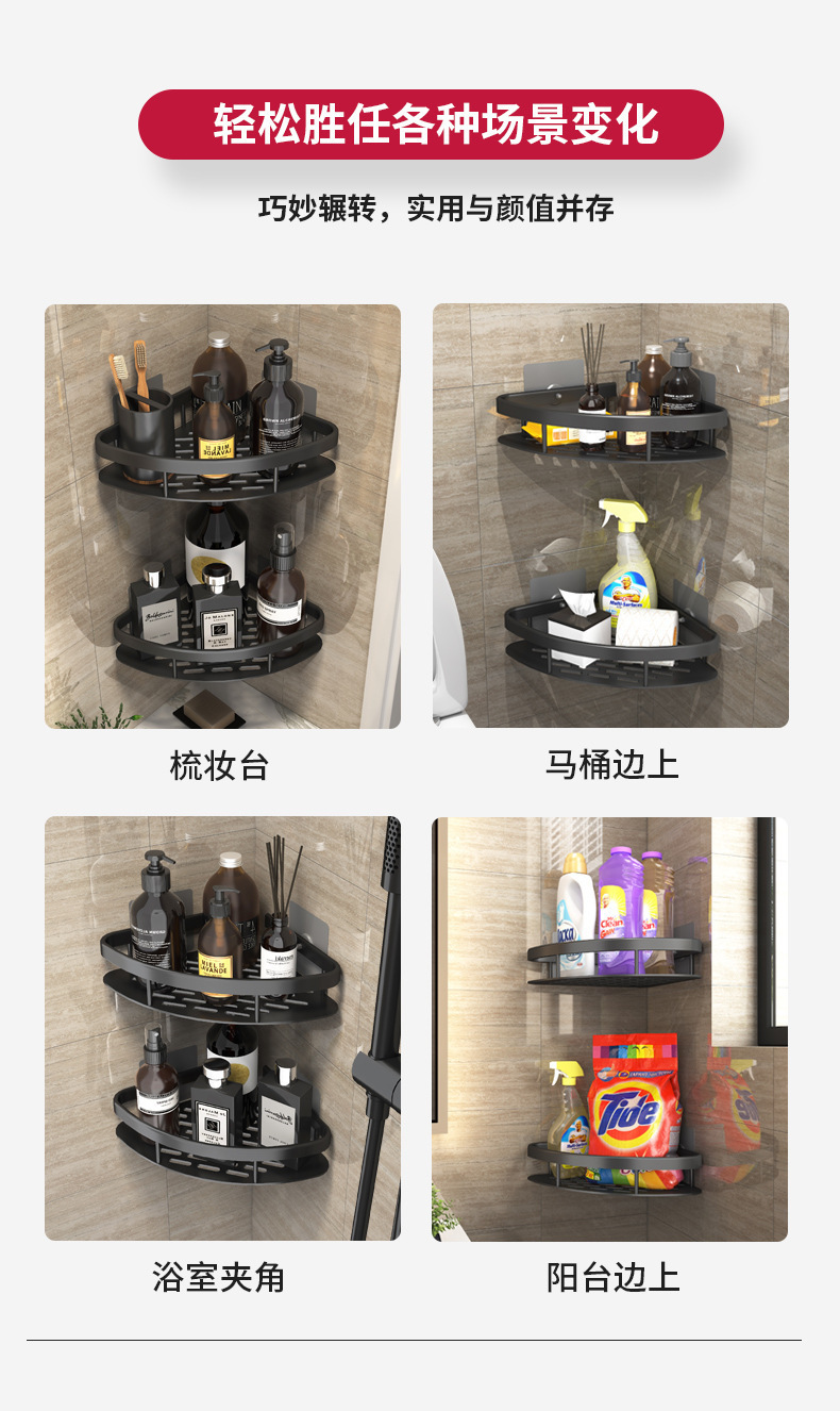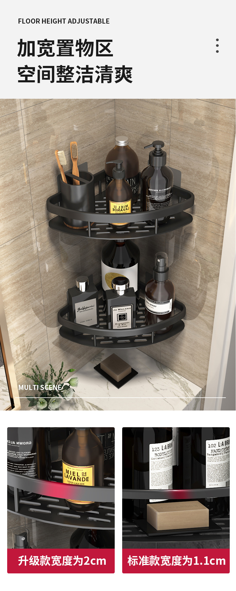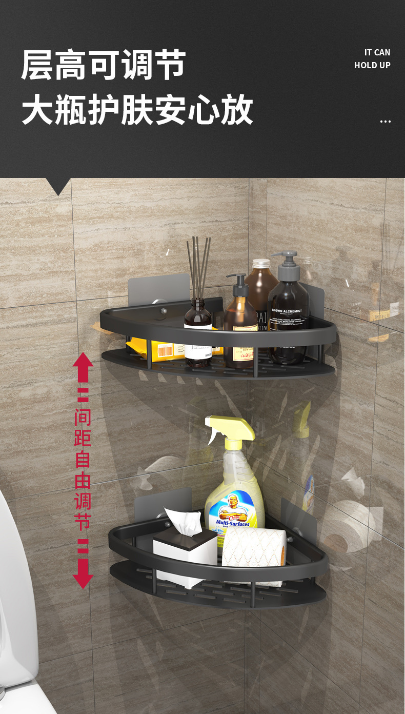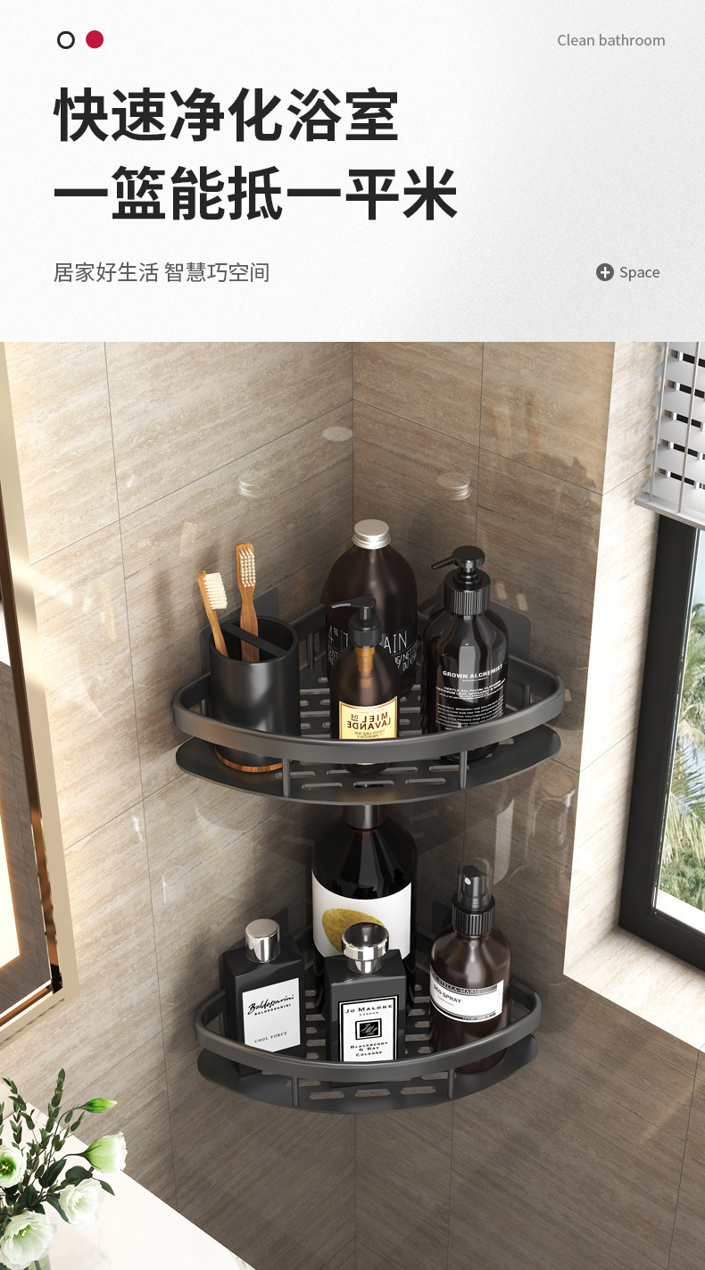 욕실 보관 랙 욕실 공간 알루미늄 펀치없는 벽걸이 원활한 주방 보관 욕실 보관 랙