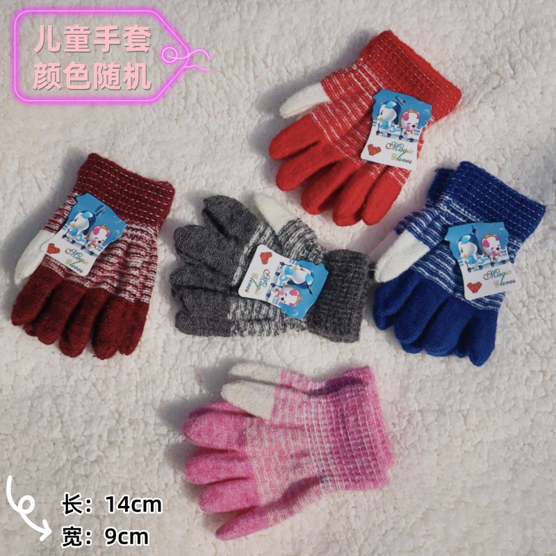 가을 겨울 어린이 인기 마헤어 귀여운 줄무늬 풀 핑거 장갑 제조업체 도매 니트 보온스토어 가기