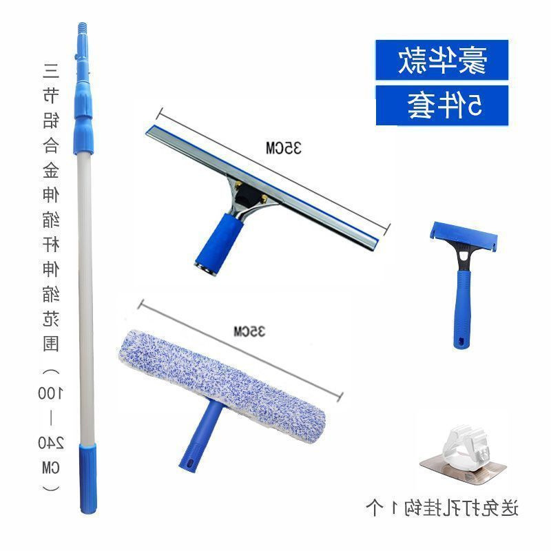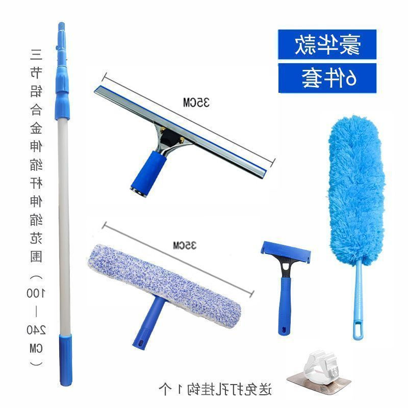유리 와이퍼 청소 유물 가정용 알루미늄 합금 수축 텔레스코픽 로드 청소 도구 전체 유리 와이퍼 세트스토어 가기