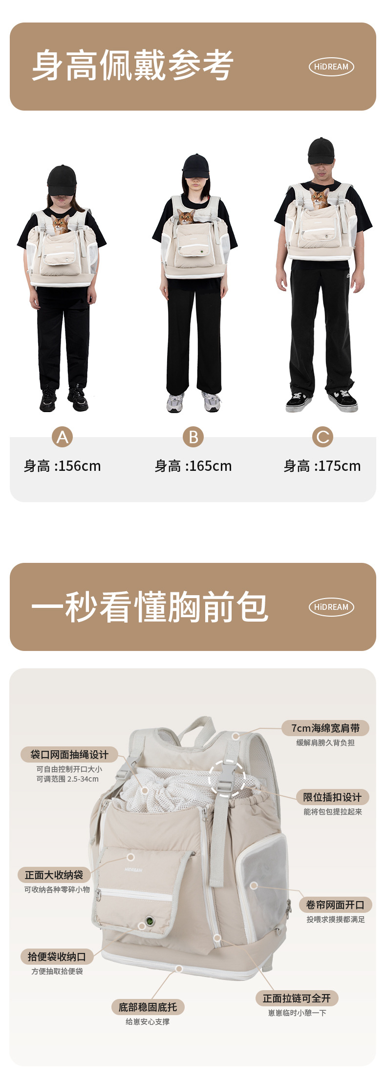 HIDREAM 애완 동물 가슴 가방 고양이 가방 휴대용 외출 경량 대용량 고양이 아웃 가방 개 배낭