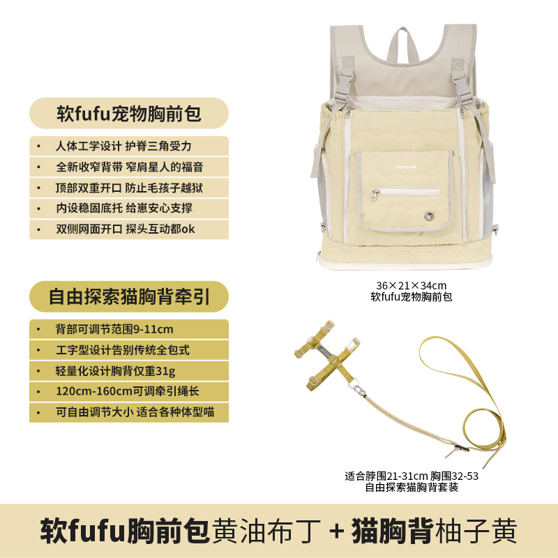 • 부드러운 푸ūfū 애완 동물 가슴 가방 버터 푸딩 + 무료 고양이 가슴과 등 자몽 노란색