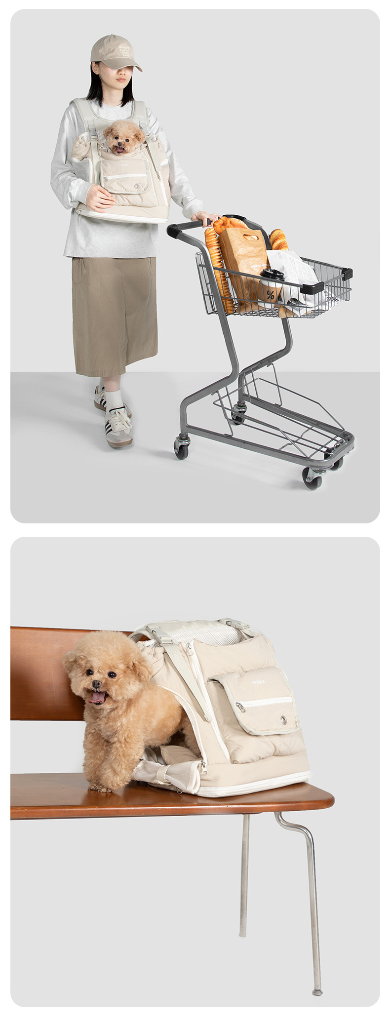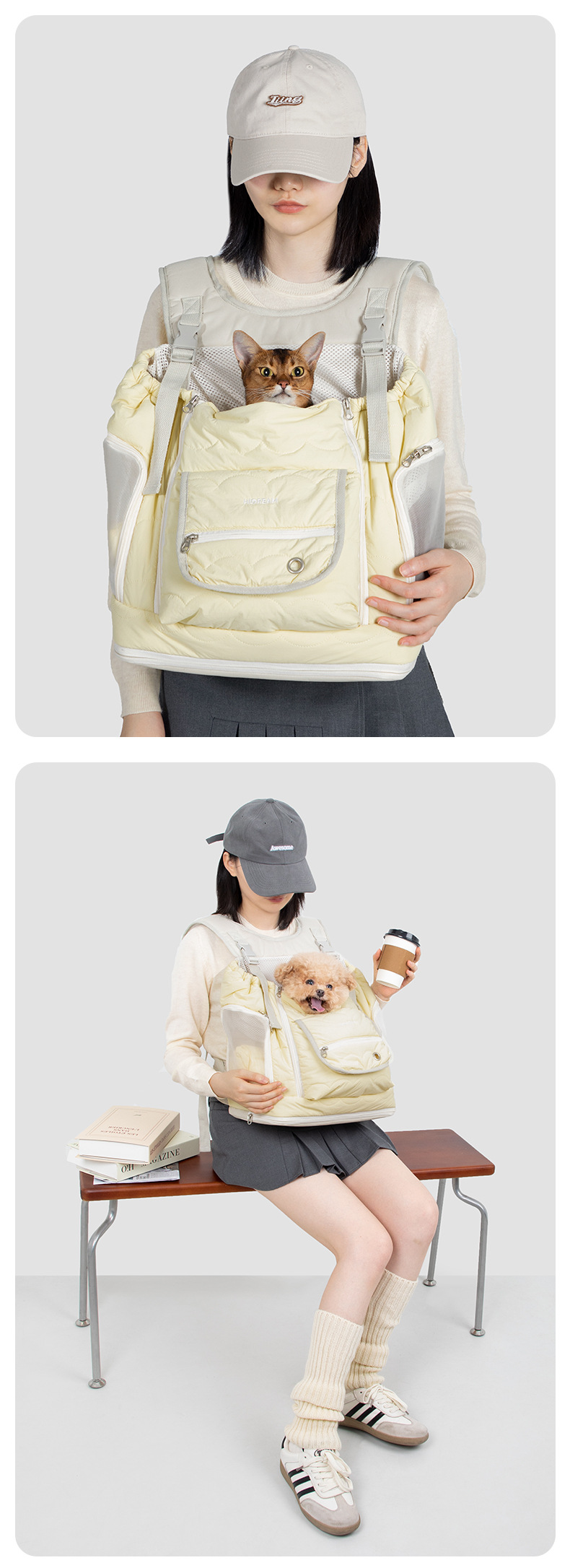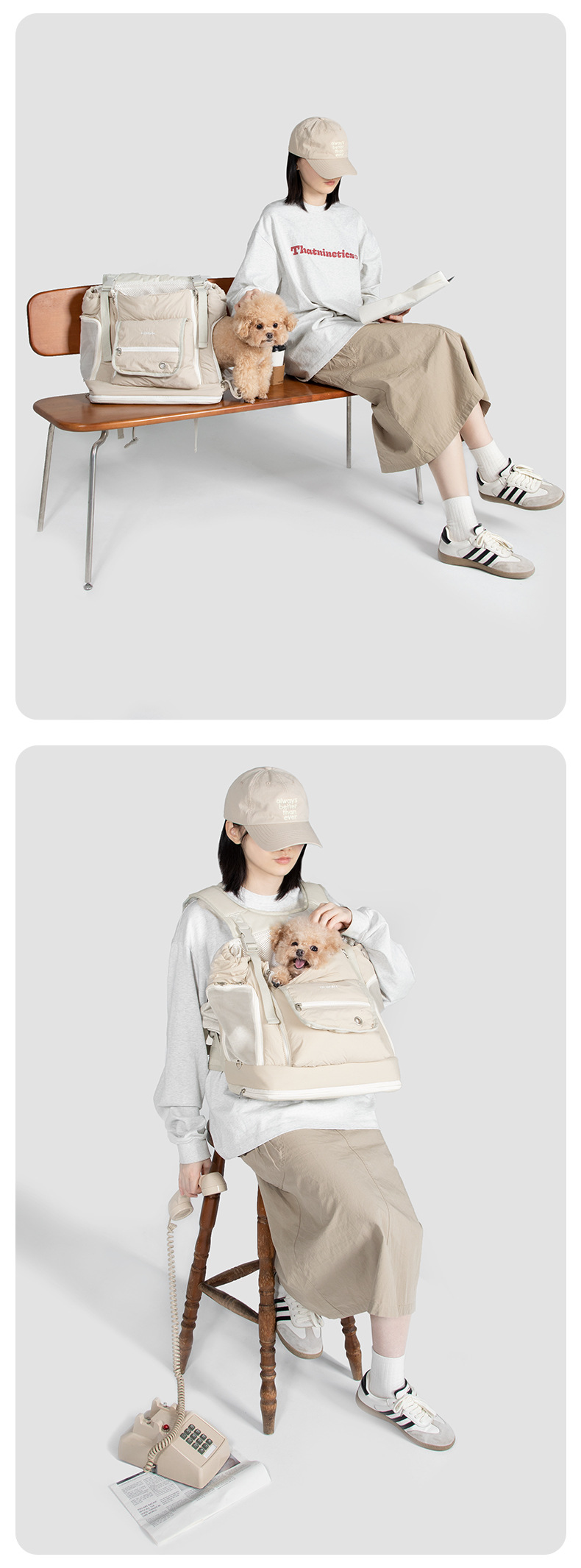 • 소프트푸푸펫 가슴가방 아몬드 커스터드 + 프리캣 가슴과 등 동백화이트
