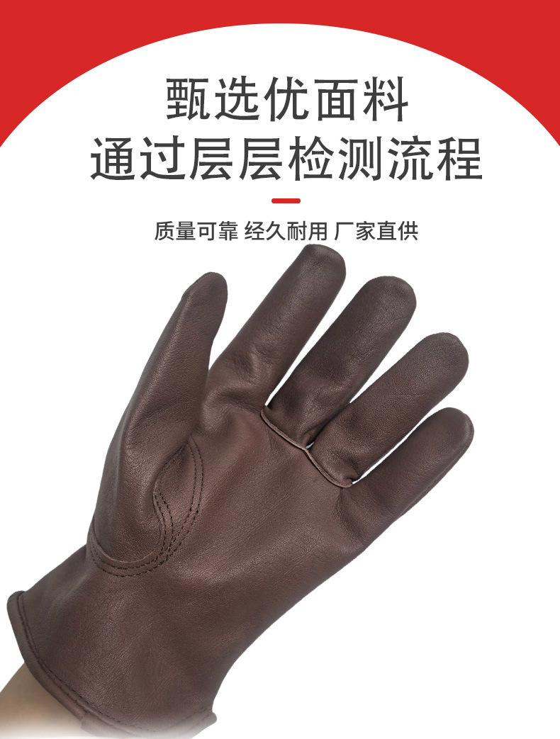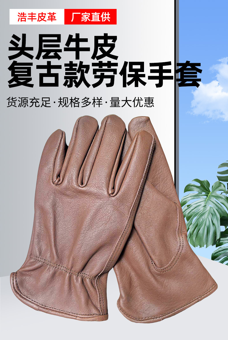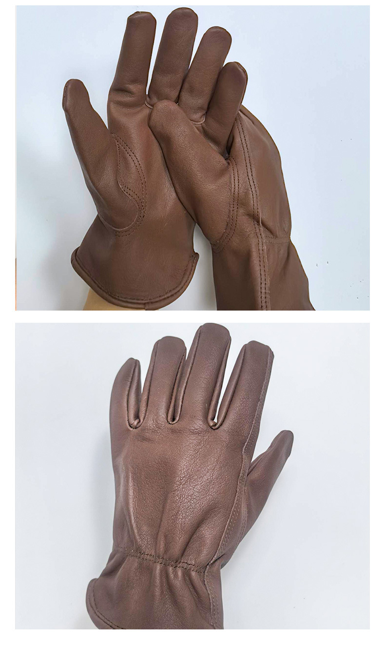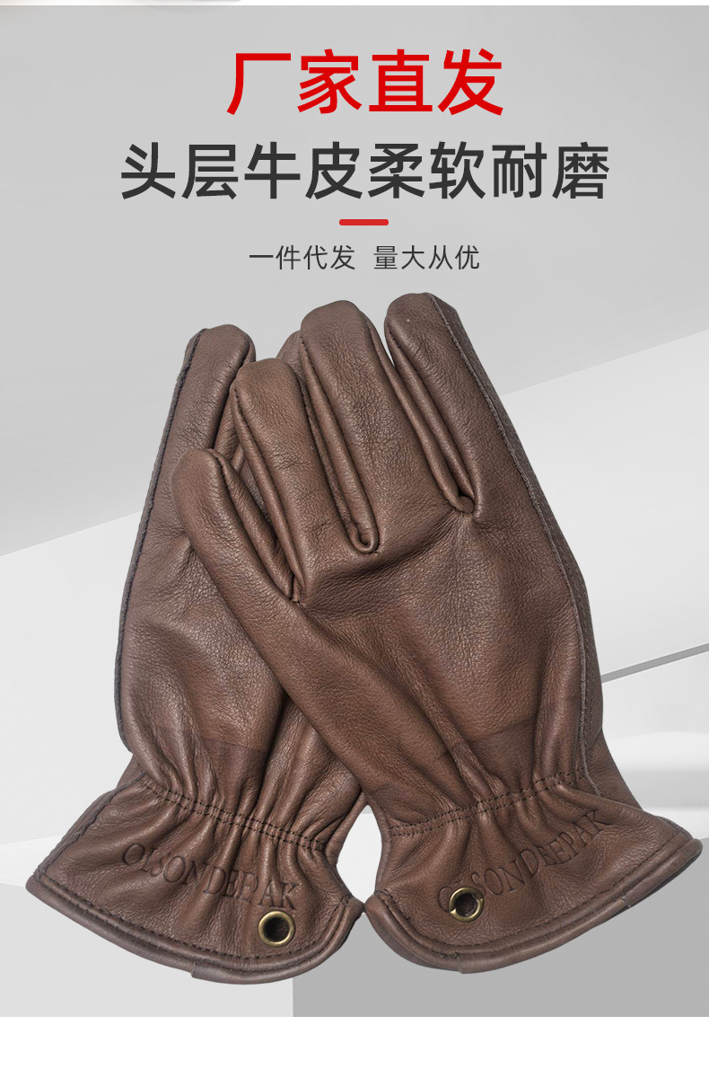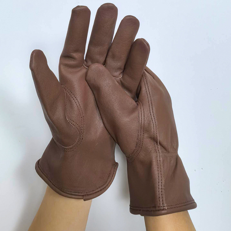 국경 간 뜨거운 판매 탑 레이어 Cowhide 다크 브라운 야외 캠핑 승마 운전자 노동 보호 장갑 공장 스트레이트 헤어