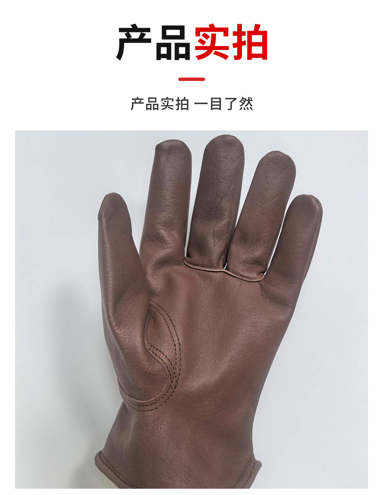 국경 간 뜨거운 판매 탑 레이어 Cowhide 다크 브라운 야외 캠핑 승마 운전자 노동 보호 장갑 공장 스트레이트 헤어스토어 가기