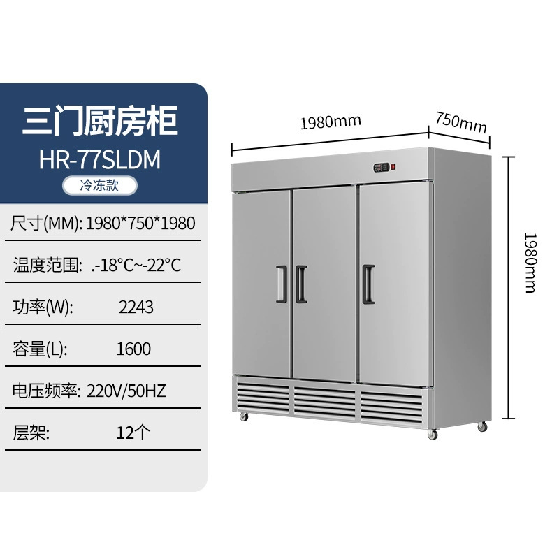 월 상업용 냉장고 수직형 신선 보관 냉장고 식당용 스테인리스 냉장고 냉동고 구내식당 주방 냉동고