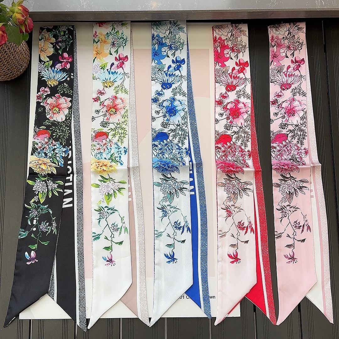 D 홈 헤어 벨트 꽃 장식 가방 핸들 리본 긴 작은 실크 스카프 스카프 여성 장식 목 일치하는 옷