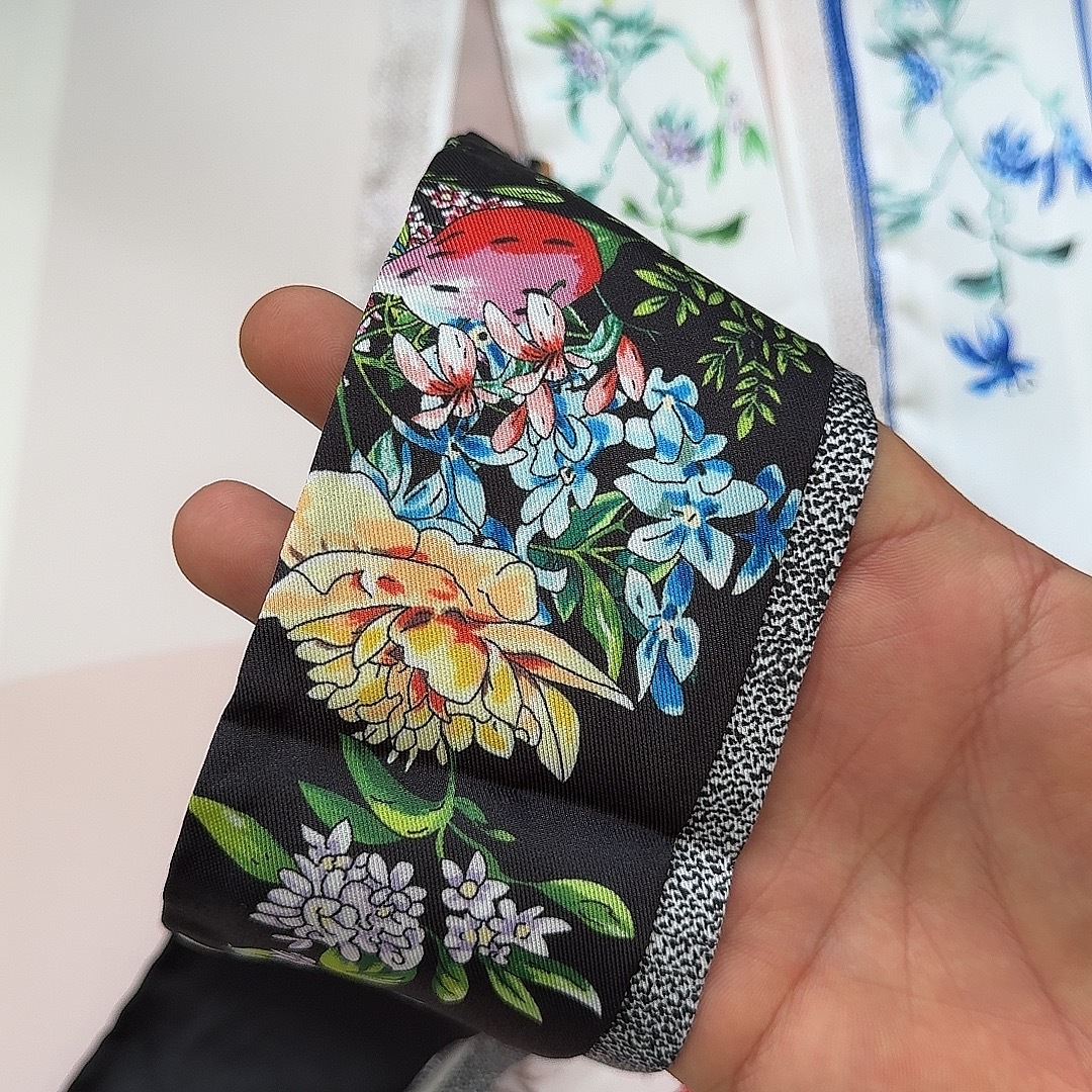 D 홈 헤어 벨트 꽃 장식 가방 핸들 리본 긴 작은 실크 스카프 스카프 여성 장식 목 일치하는 옷스토어 가기