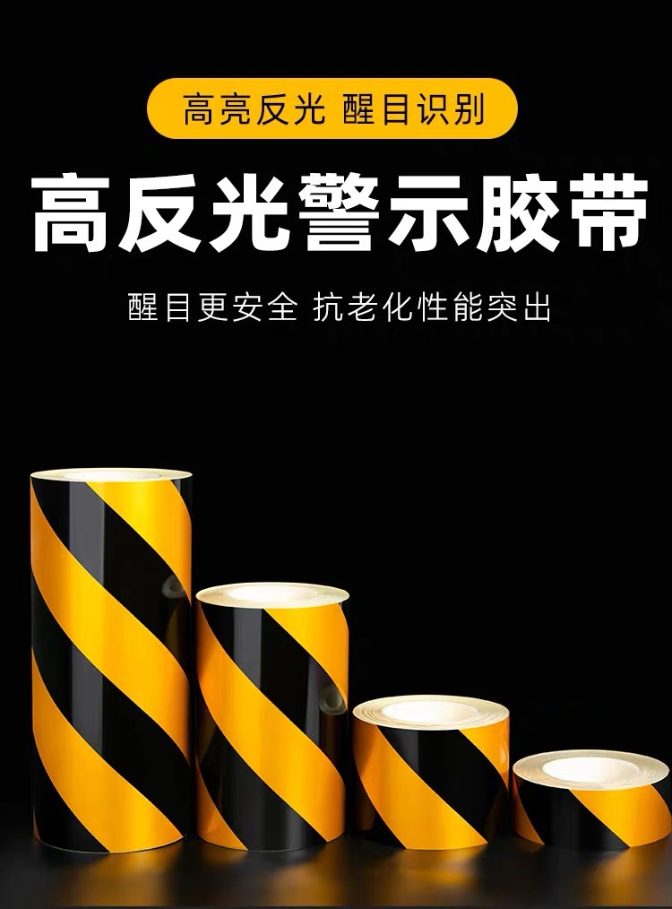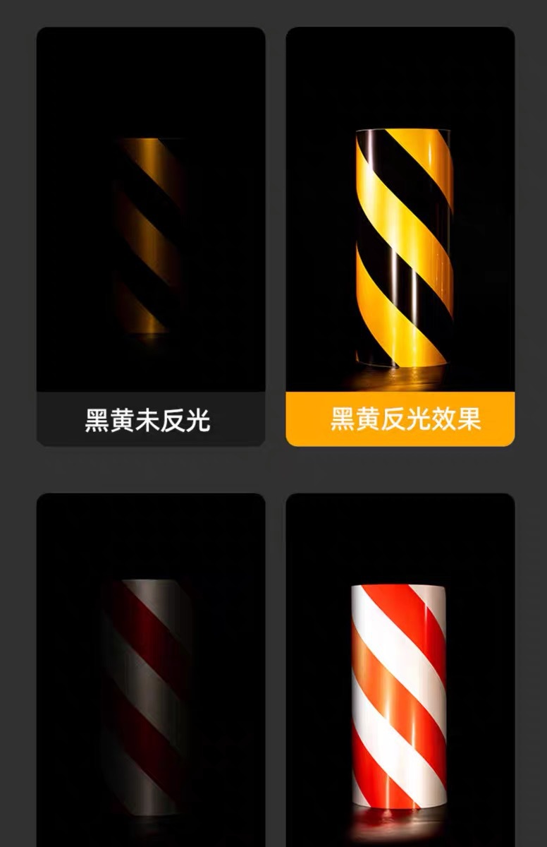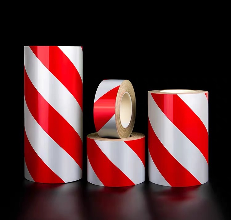 반사 경고 테이프 레드 화이트 옐로우 블랙 틱 반사 필름 안전 경고 라벨 테이프 도로 자동차 경고 테이프