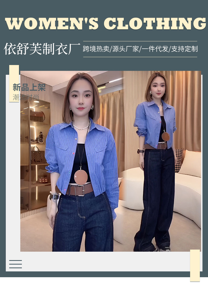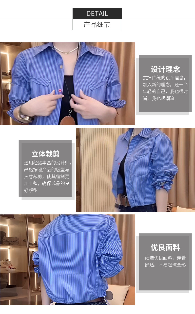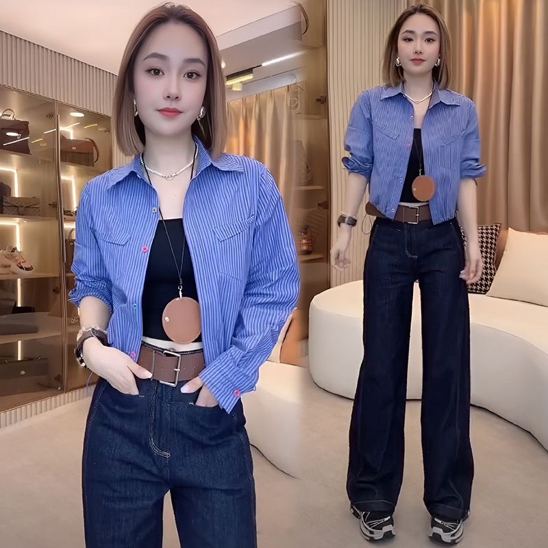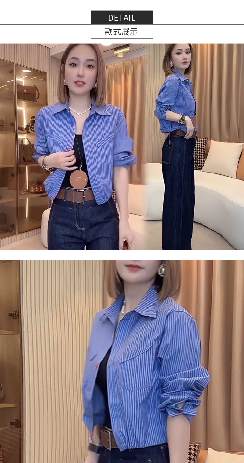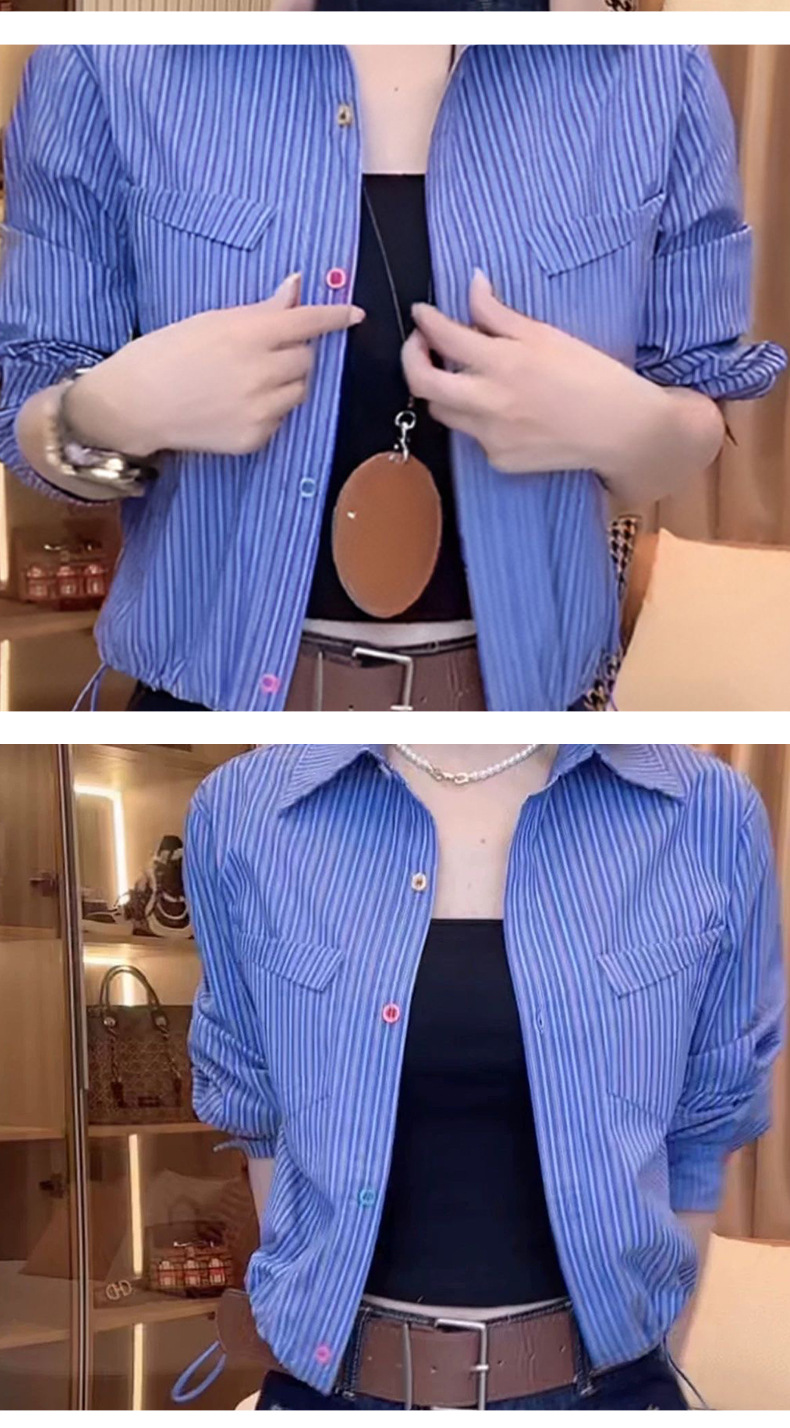 셔츠 2024 디자인 틈새 느슨한 게으른 스타일 슬리밍 우아한 탑 드로우 스트링 스트라이프 여성을위한 올 매치 쇼트 코트스토어 가기