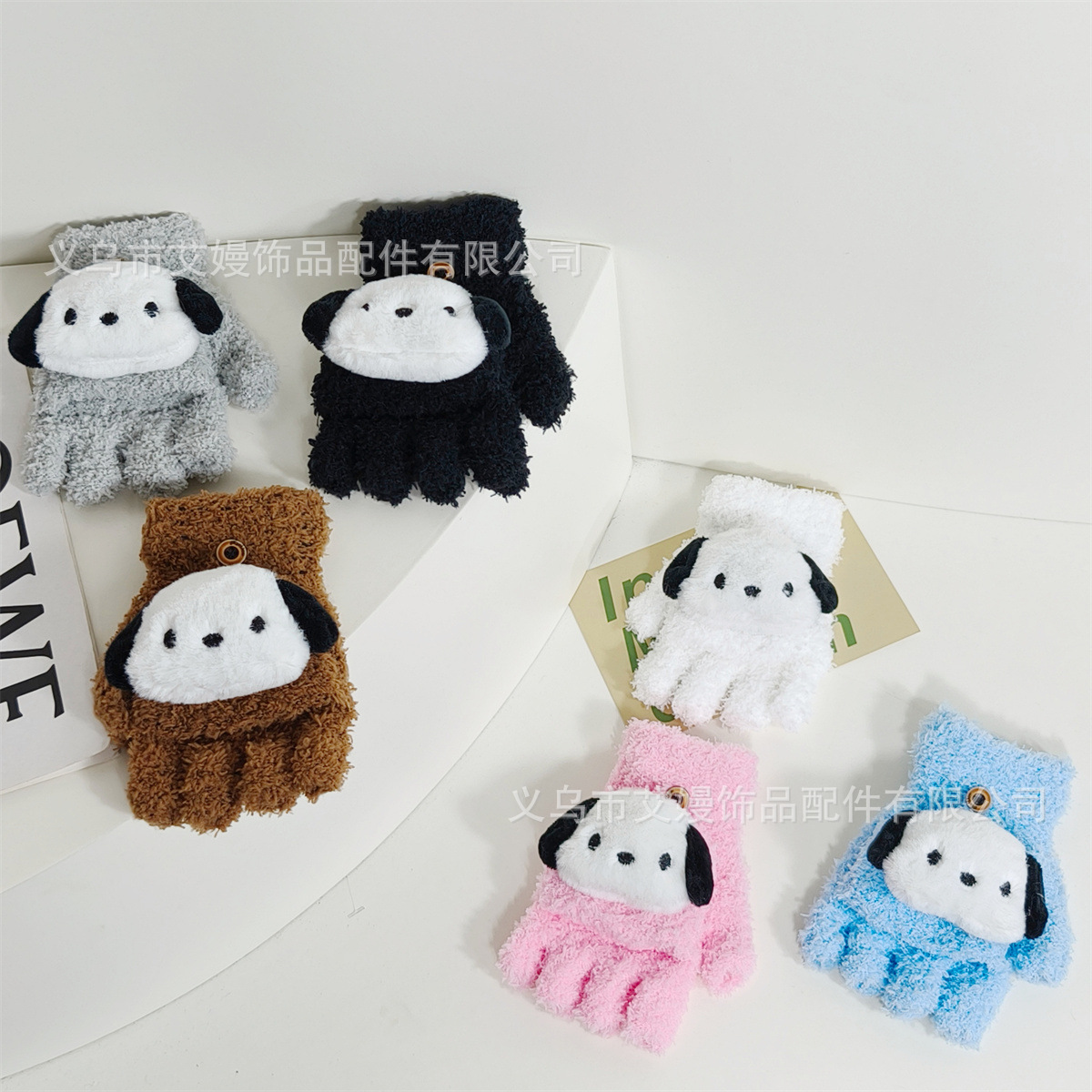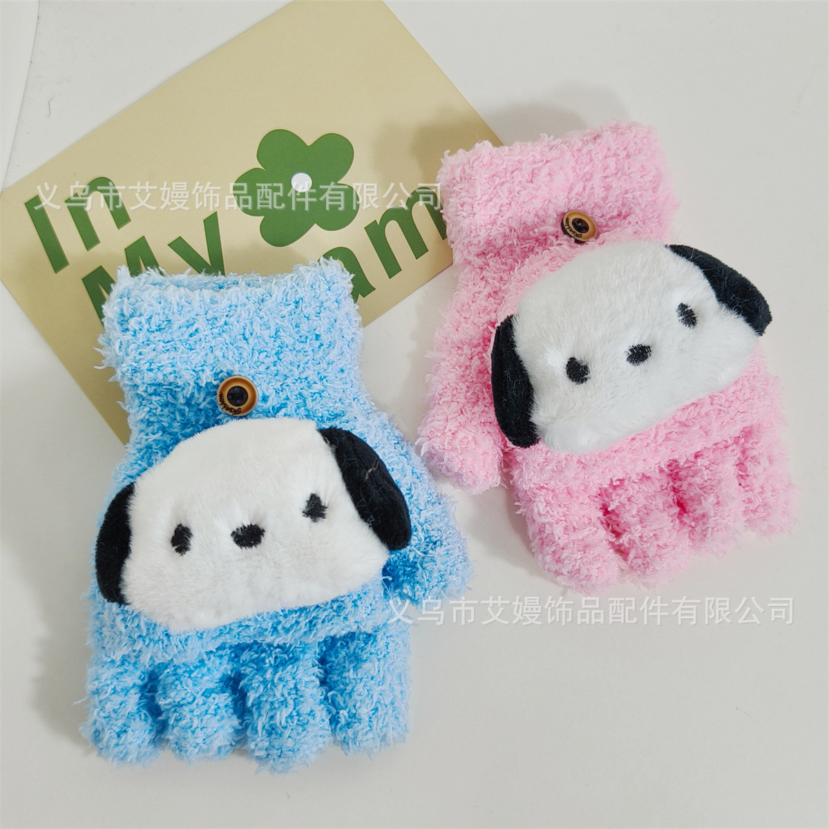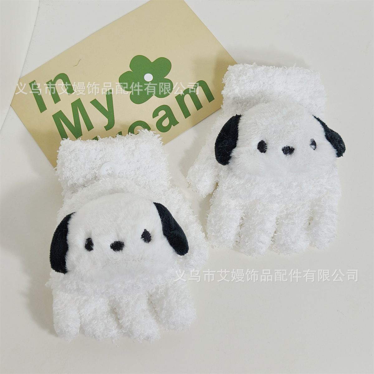 가을과 겨울 새로운 아이들의 귀여운 큰 귀 개 봉제 플립 장갑 두꺼운 따뜻한 반 손가락 장갑을 타는 학생스토어 가기