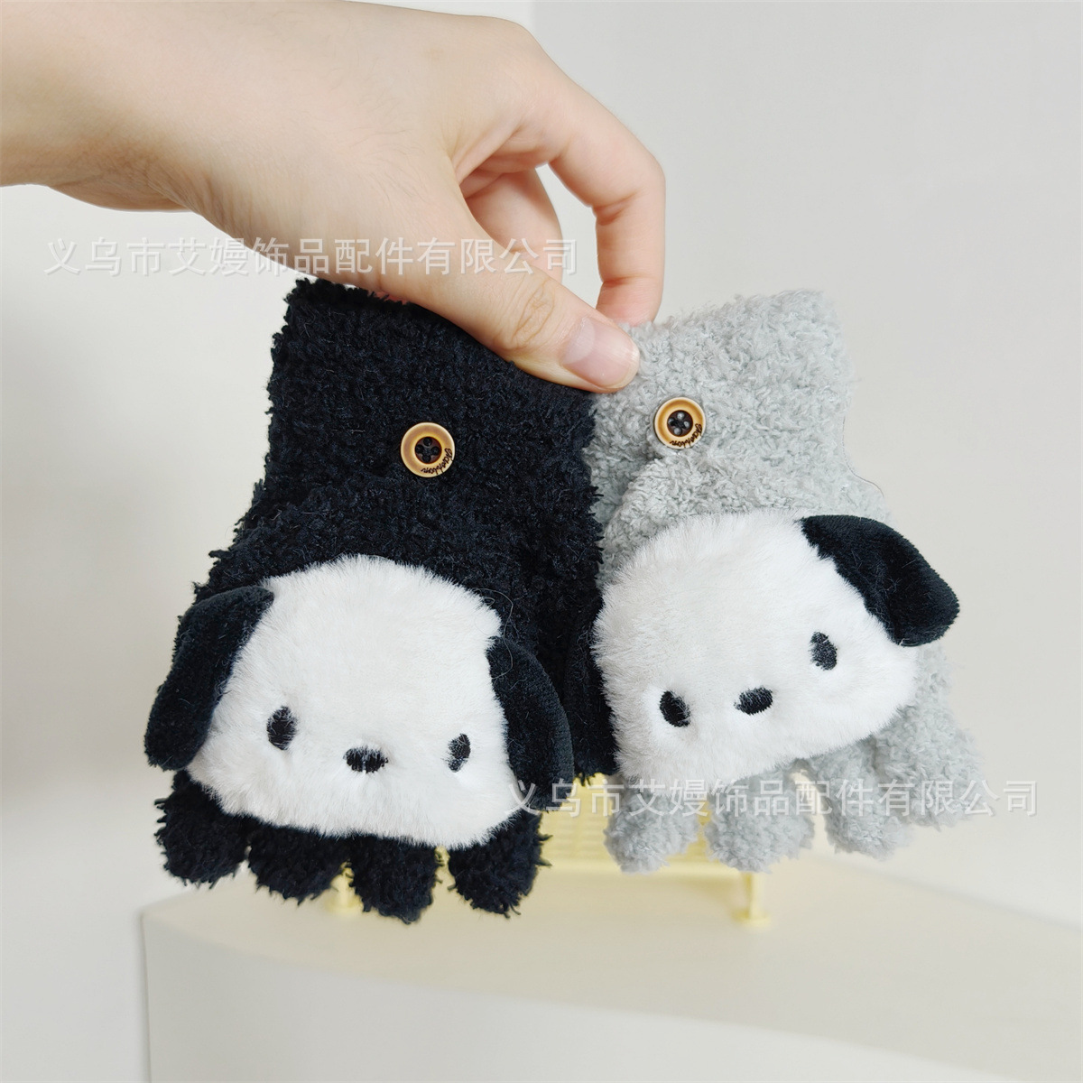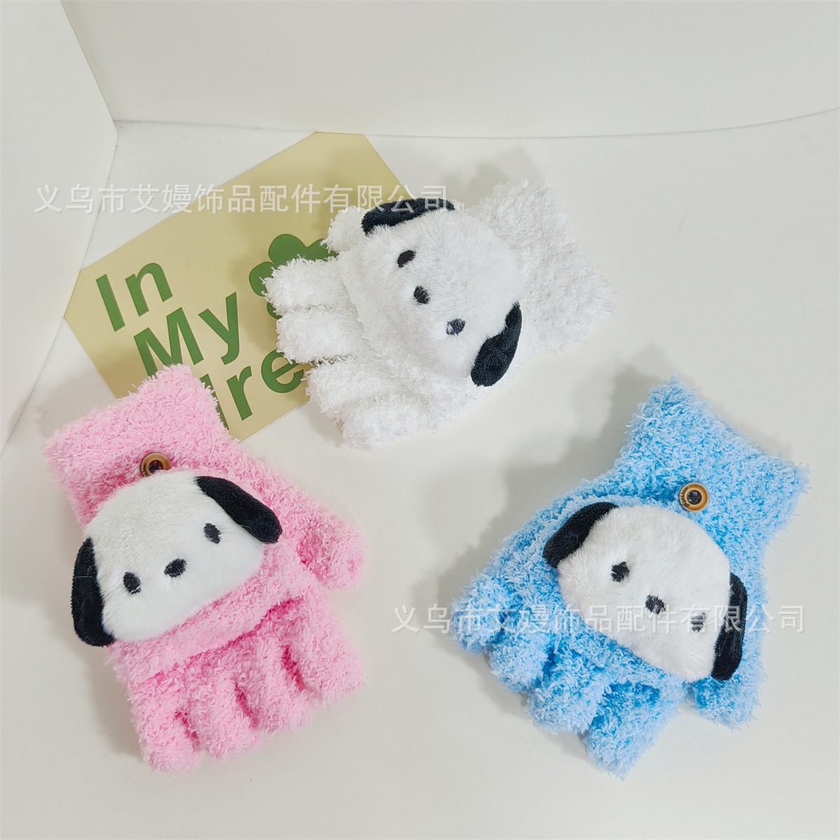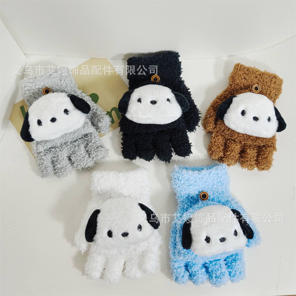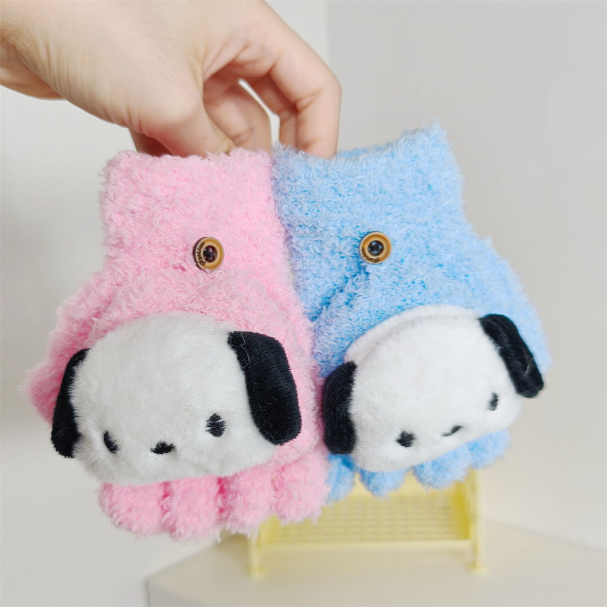 가을과 겨울 새로운 아이들의 귀여운 큰 귀 개 봉제 플립 장갑 두꺼운 따뜻한 반 손가락 장갑을 타는 학생스토어 가기