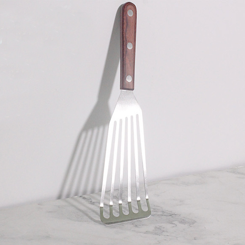 재고 스테인레스 스틸 장어 삽 튀긴 스테이크 볶음 생선 삽 나무 손잡이 다기능 Teppanyaki 유출 된 삽 주방 도구스토어 가기