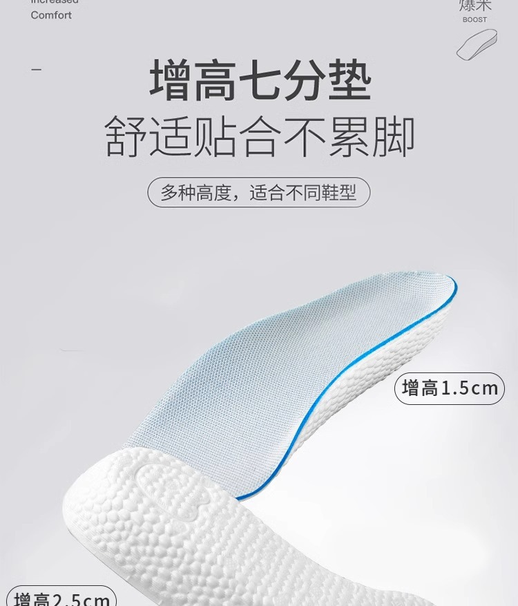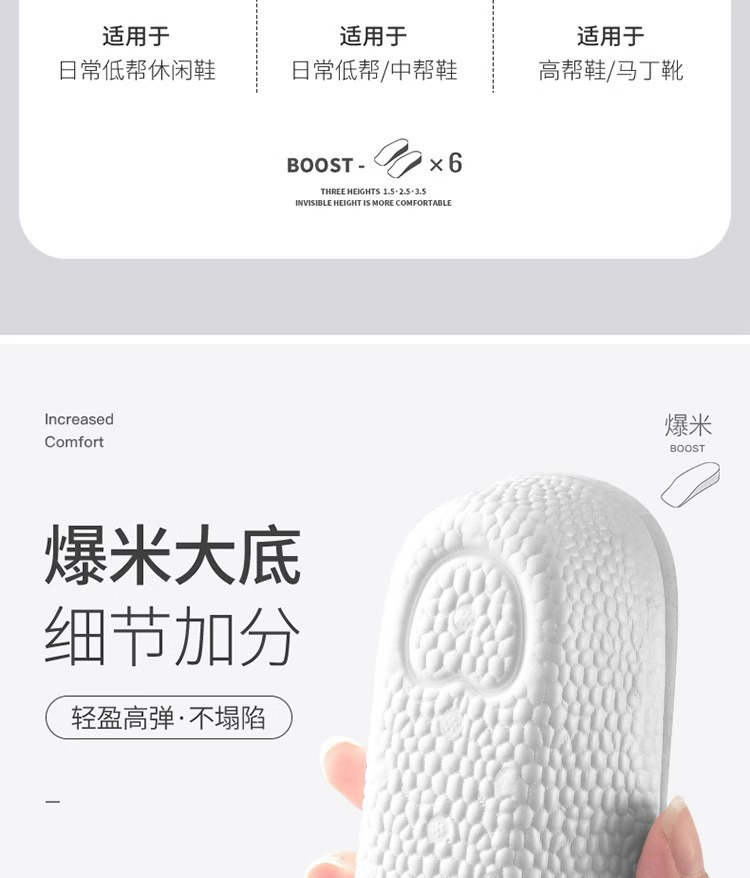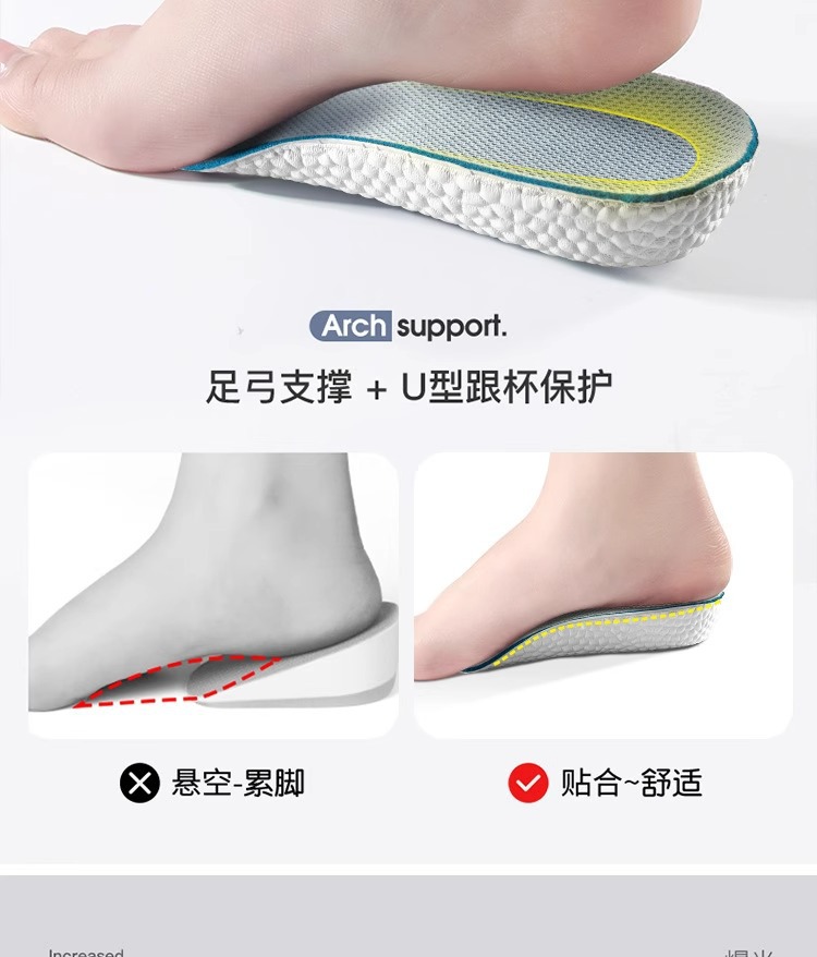 발 아치 깔창 남성과 여성의 보이지 않는 상승 패드 부드러운 바닥 부스트 팝콘 편안한 스포츠 탈취제 충격 흡수스토어 가기