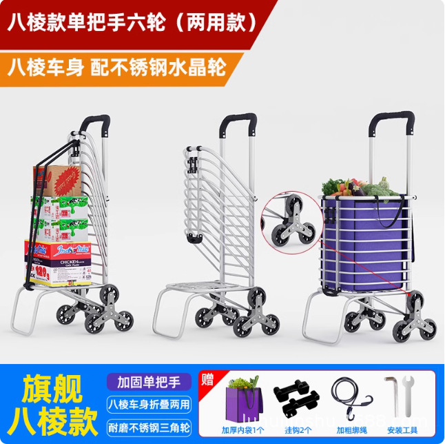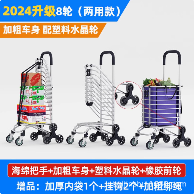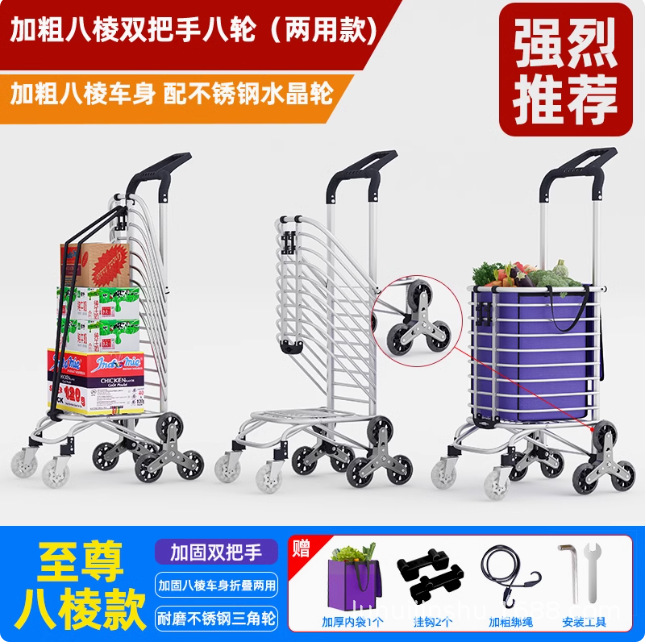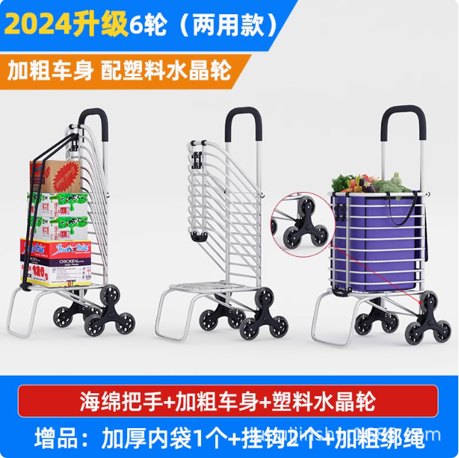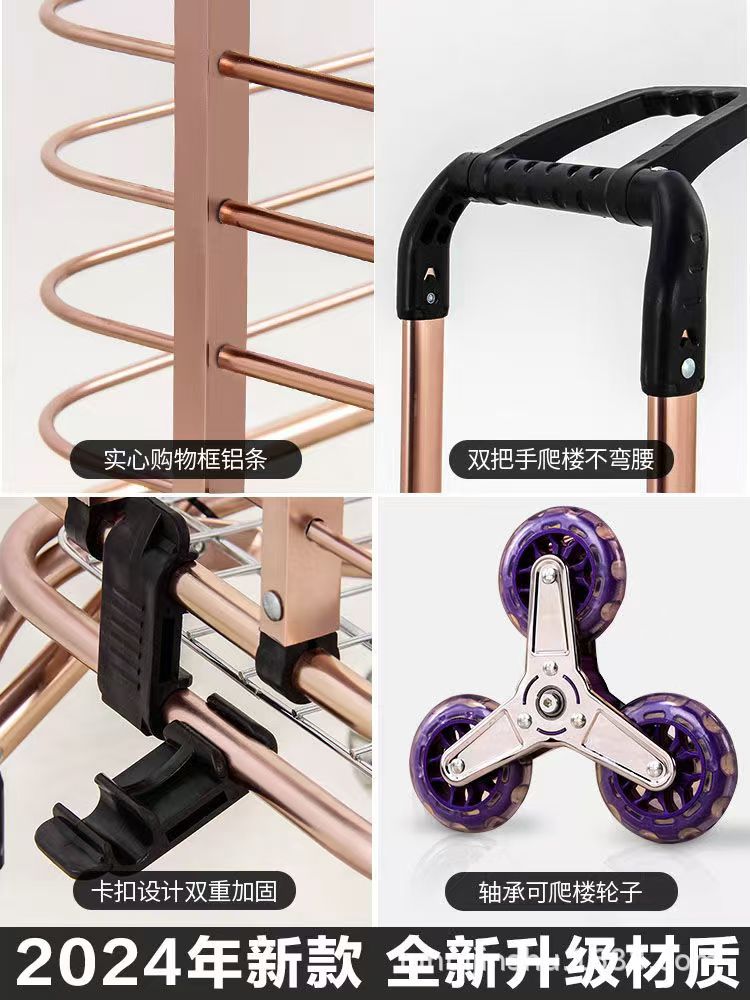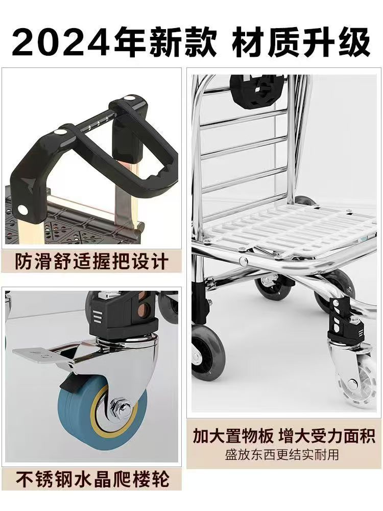 노점상용 손수레, 캠핑카, 계단 오르기용 스테인리스 접이식 수하물 카트, 40kg 톤 하중의 접이식 식료품 카트