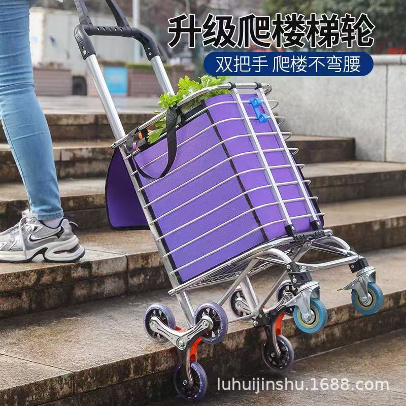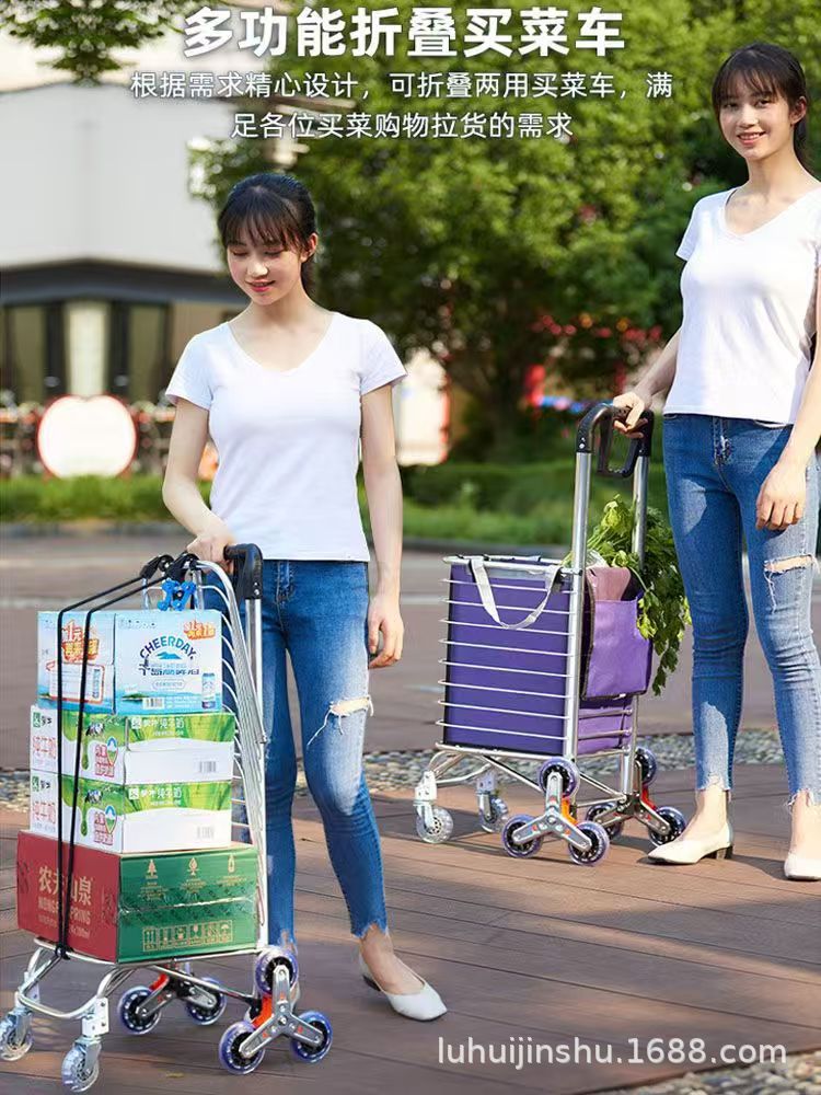 노점상용 손수레, 캠핑카, 계단 오르기용 스테인리스 접이식 수하물 카트, 40kg 톤 하중의 접이식 식료품 카트스토어 가기
