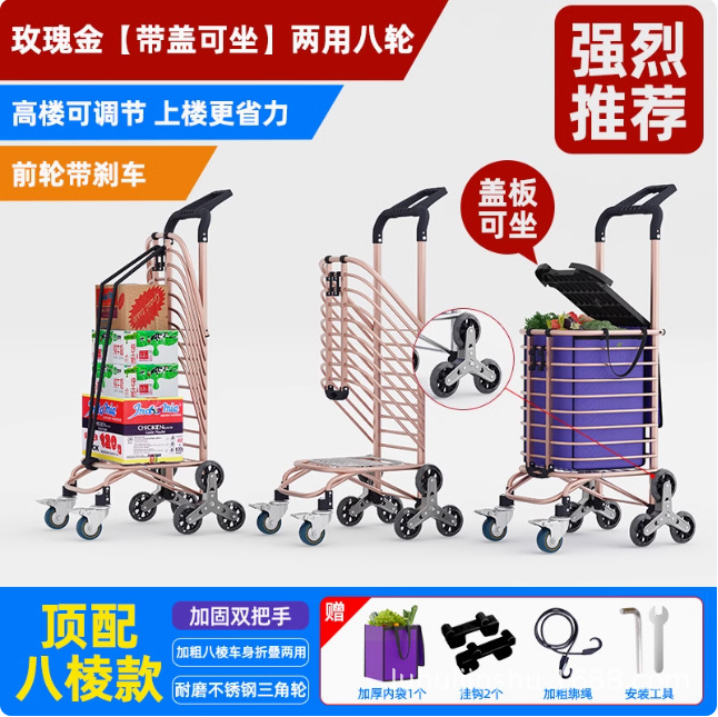 • 10년 된 스테인레스 고급 항공 알루미늄 로즈 골드 8개의 바퀴(앉을 수 있는 덮개 포함) + 선물