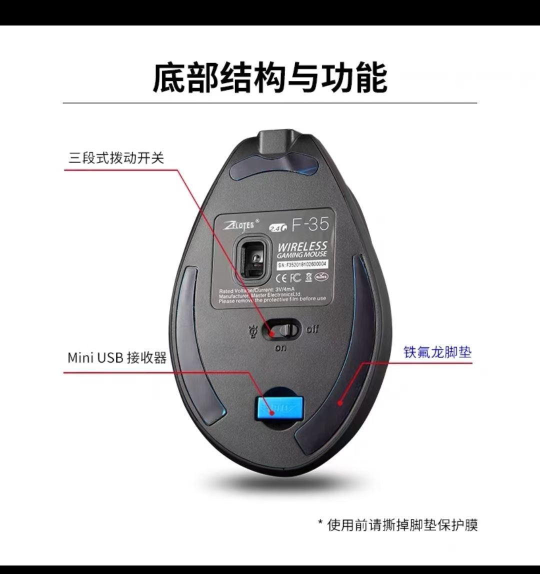 ZELOTES F-35 수직 마우스 그립 인체 공학적 노트북 데스크탑 무선 마우스