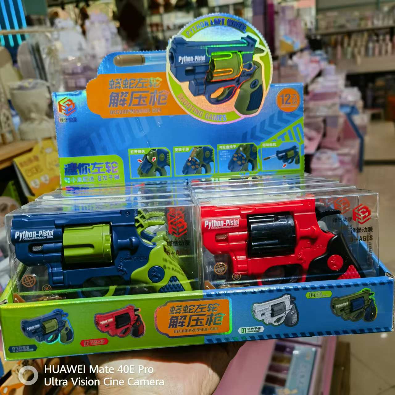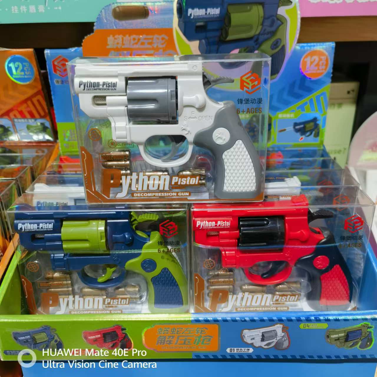 새로운 파이썬 리볼버 감압 총은 부드러운 총알을 발사 할 수 있습니다. 어린이 리볼버 장난감 총 소년 장난감 작은 선물스토어 가기