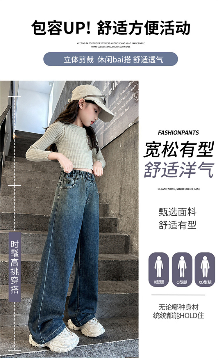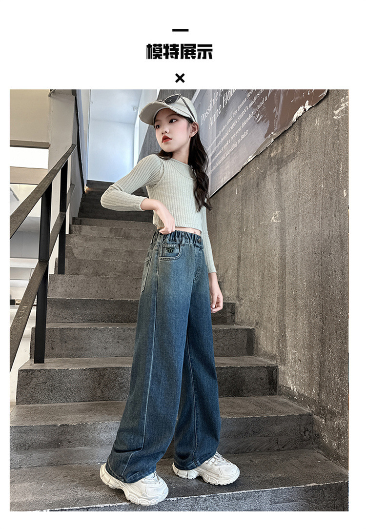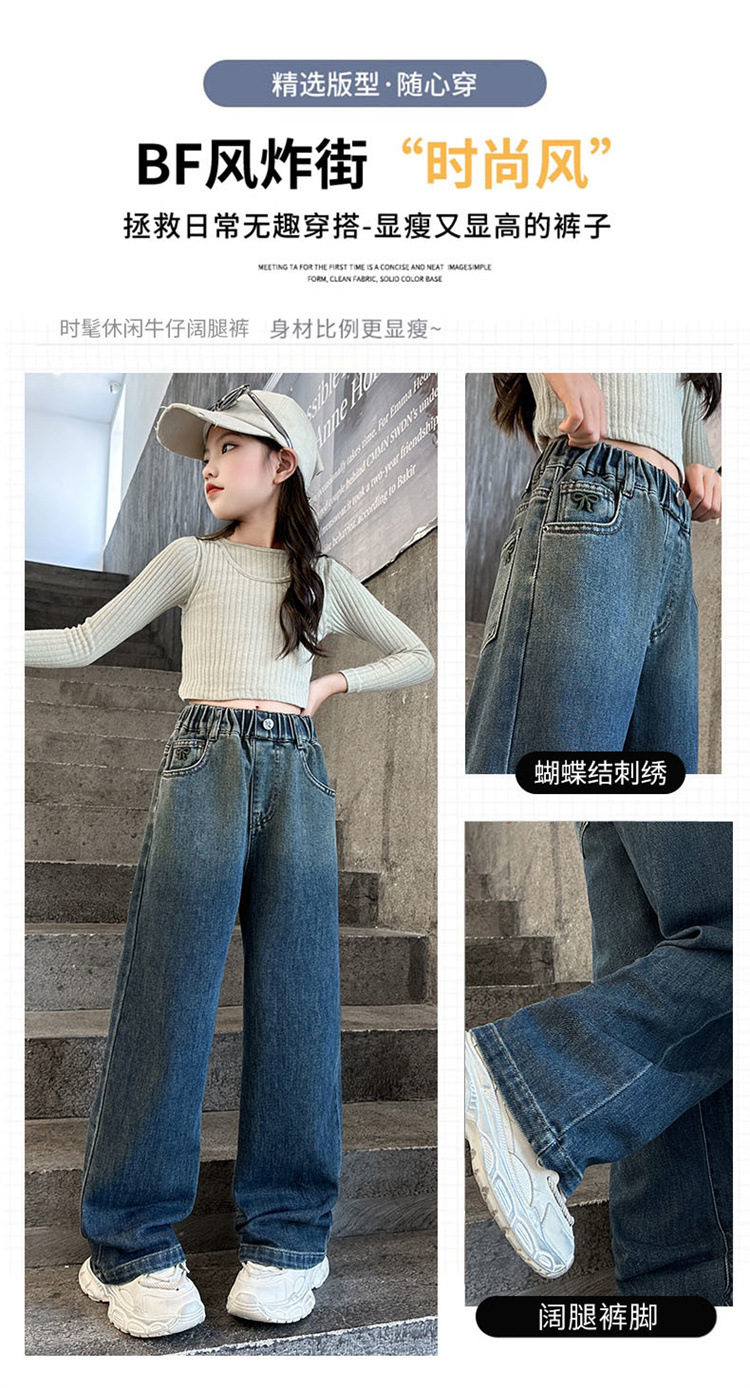 여아용 가을 겨울 청바지 2025 신상 겨울 한국 스타일 중대형 아동용 루즈핏 플리스 자수 리본 와이드 팬츠스토어 가기