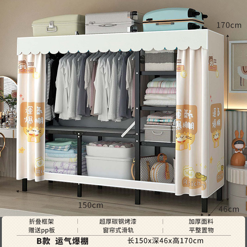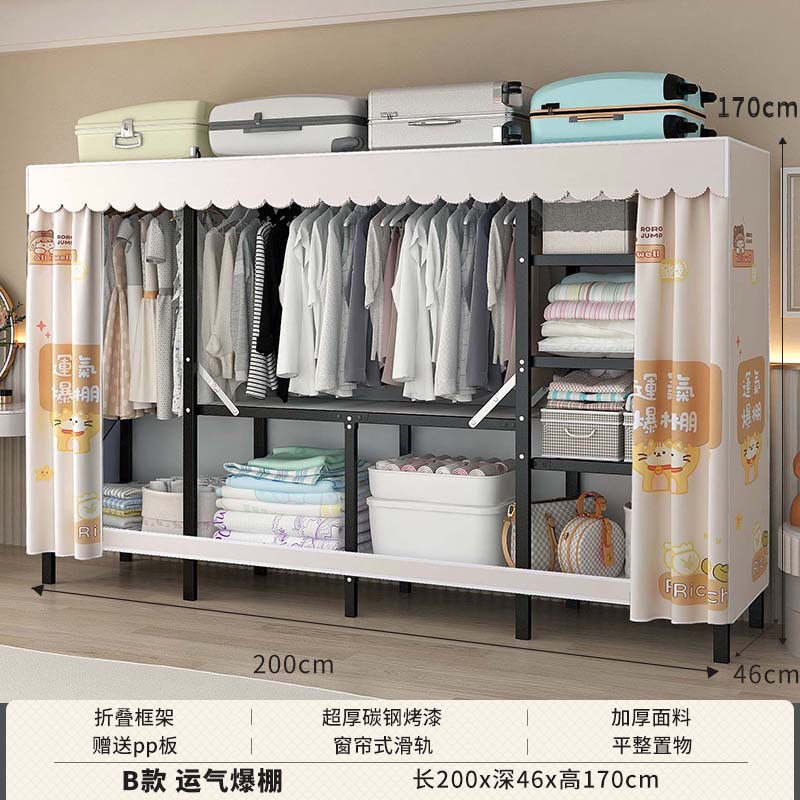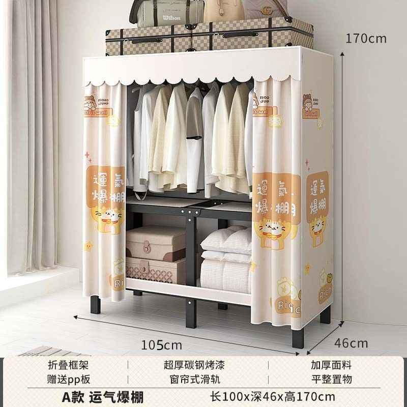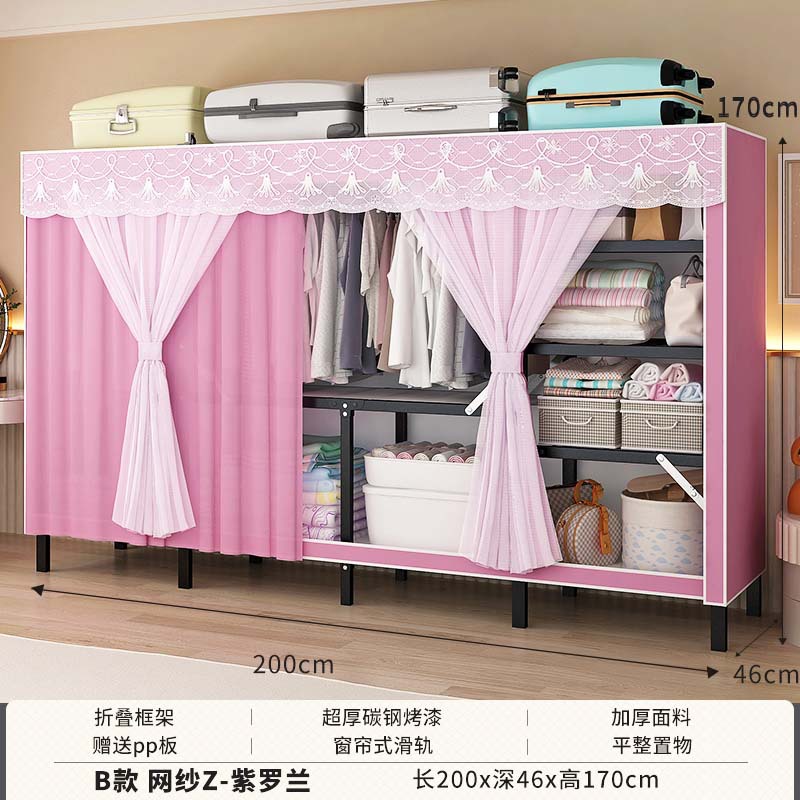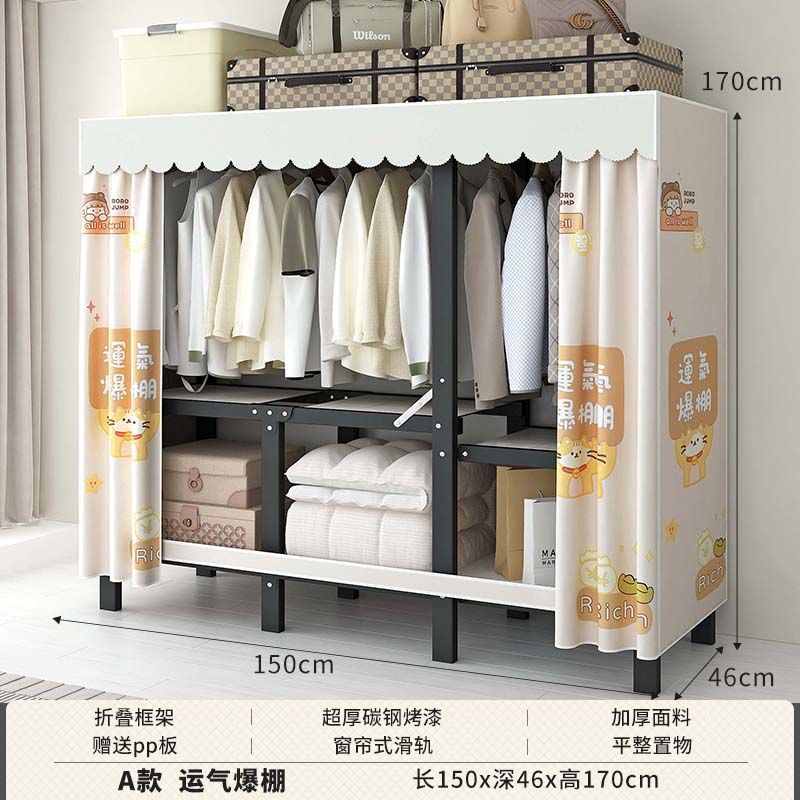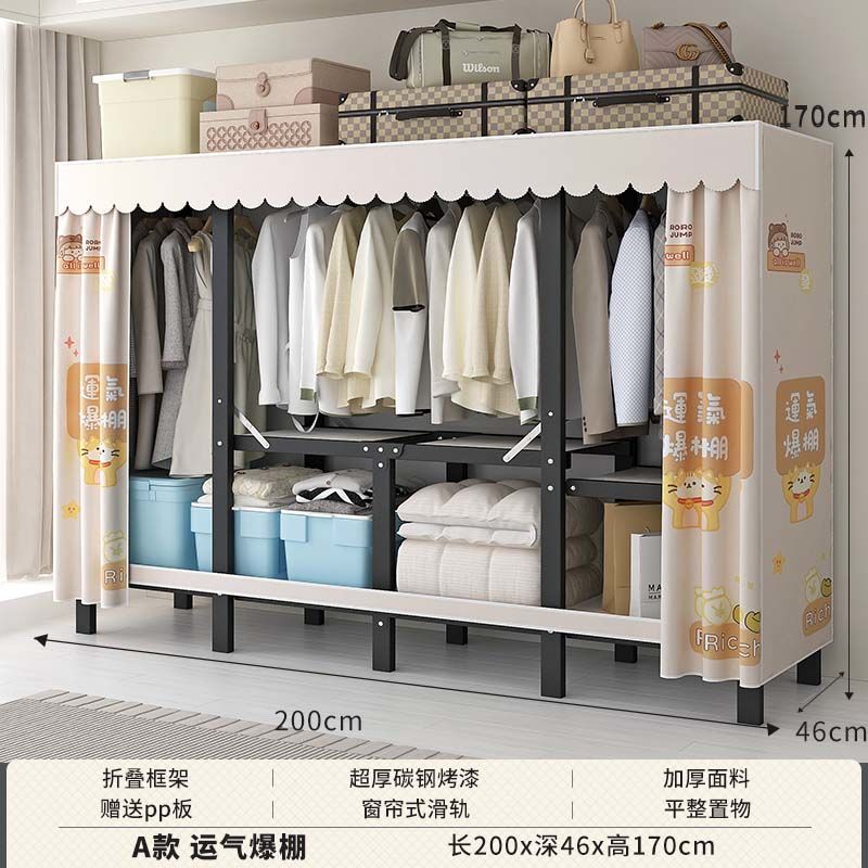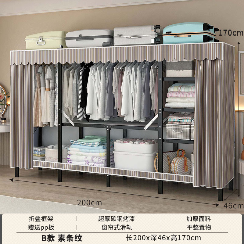 설치-무료 접이식 옷장 홈 침실 간단한 옷장 굵게 강화 렌탈 룸 보관 옷장 강력하고 내구성스토어 가기