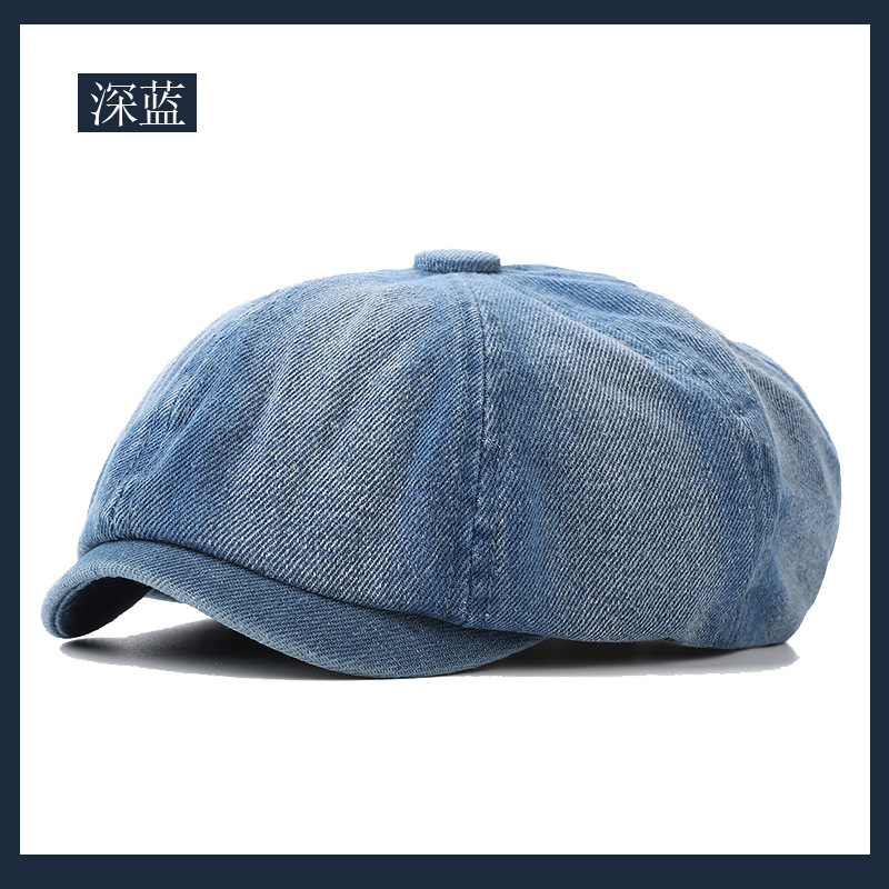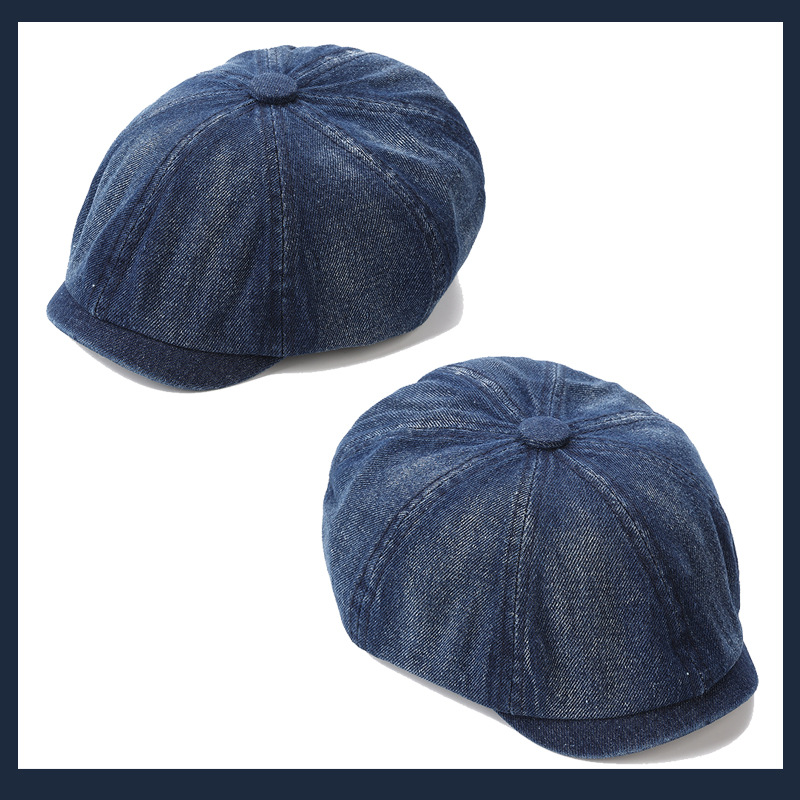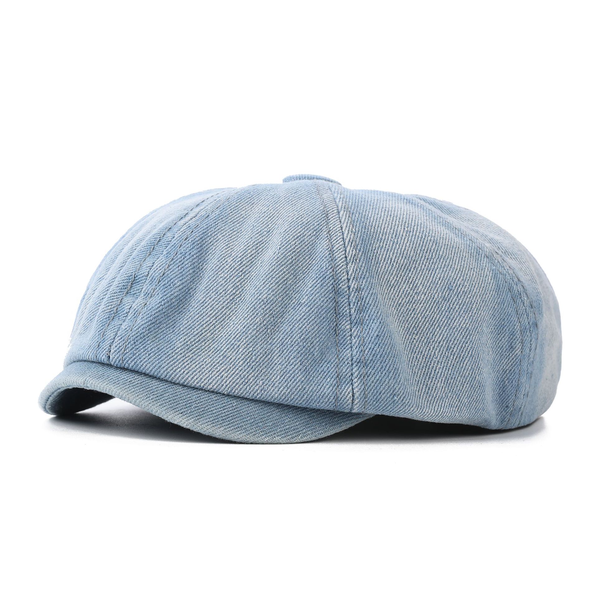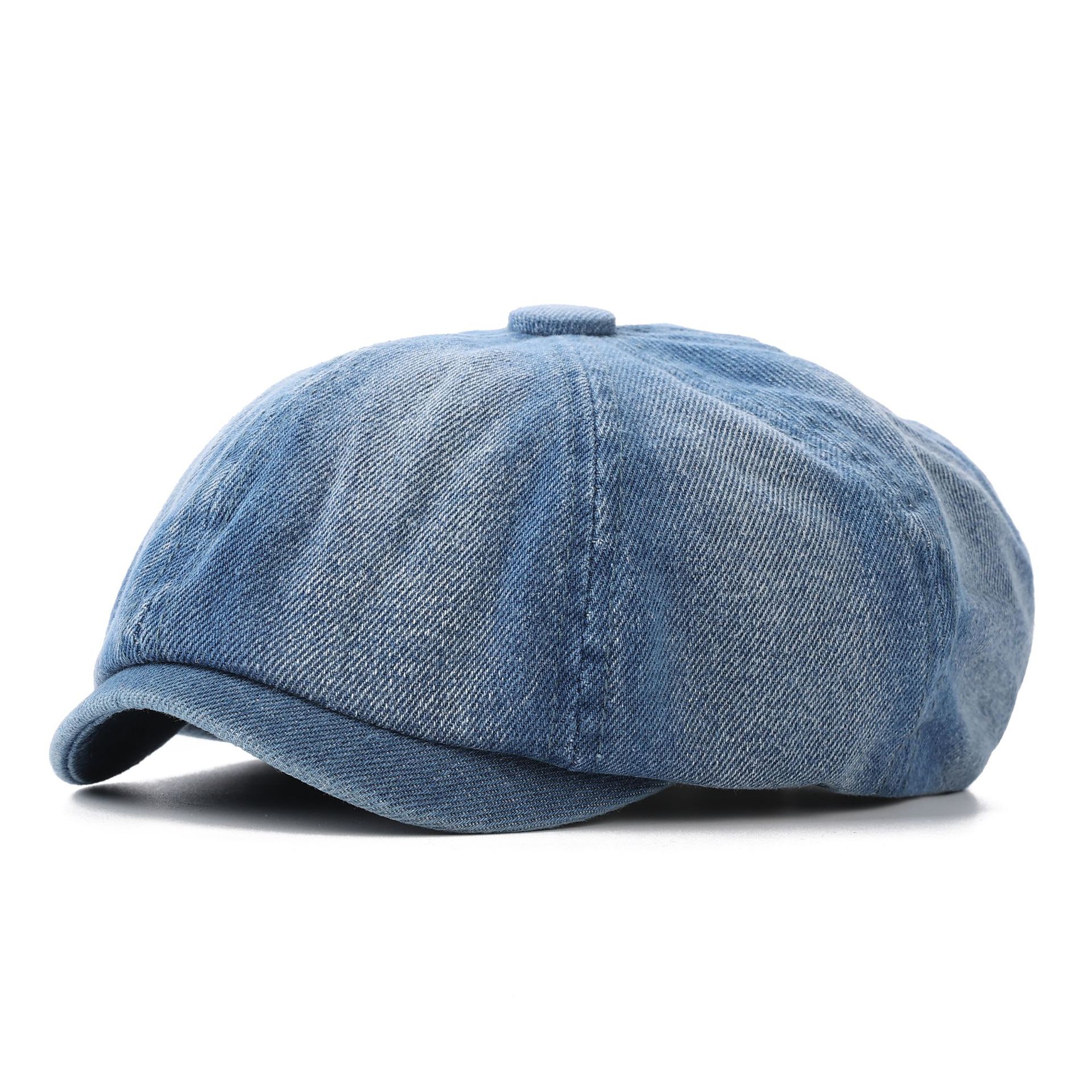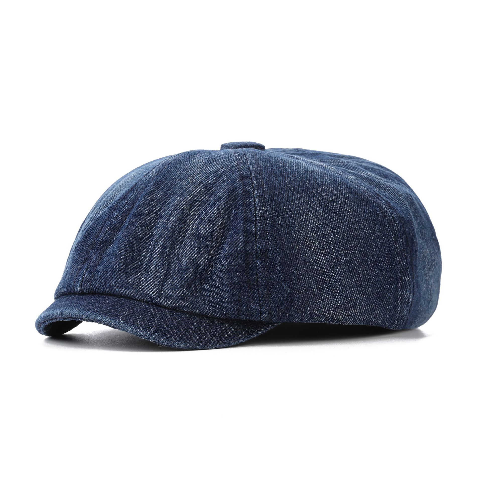 영국 스타일 데님 패브릭 팔각형 모자 남녀 공용 베레모 청소년용 캡 프리미엄 모자 도매 레트로 스타일스토어 가기