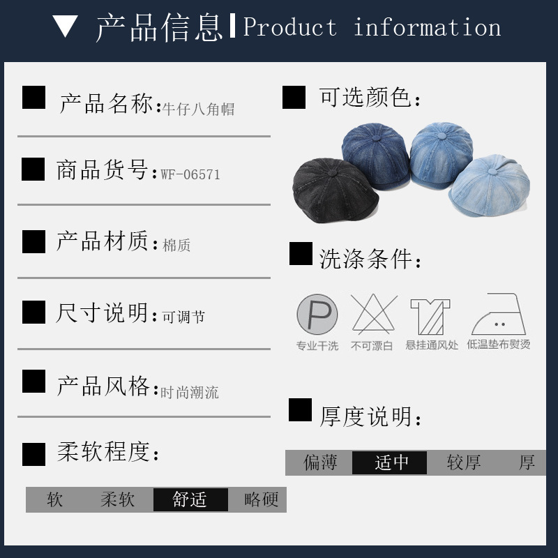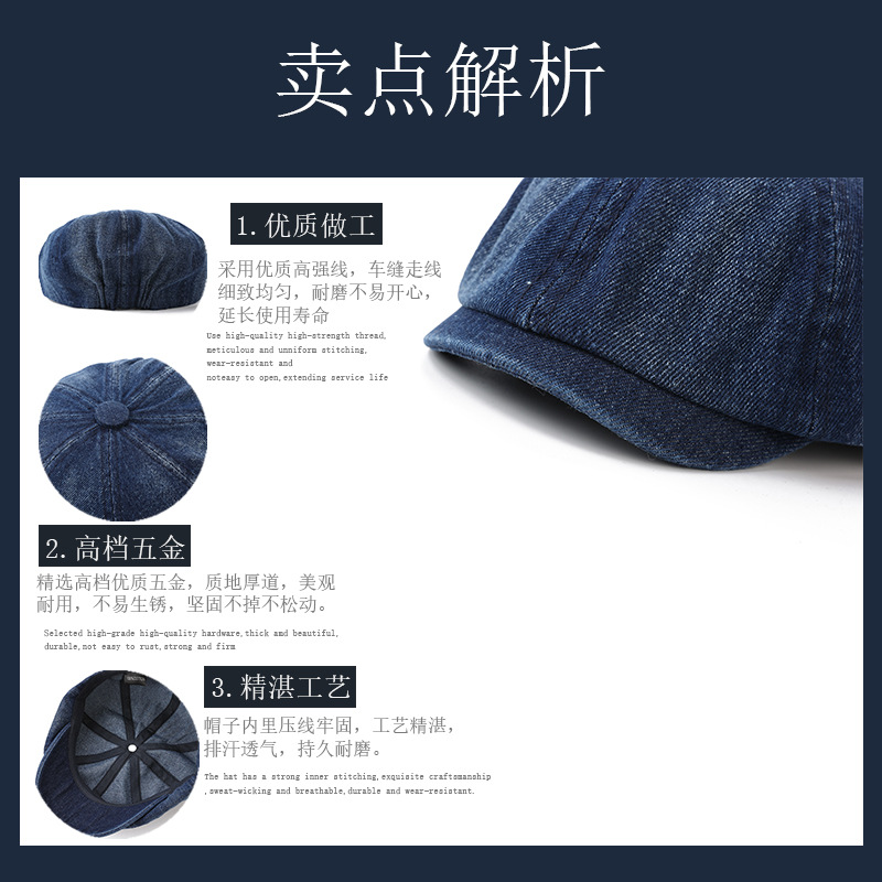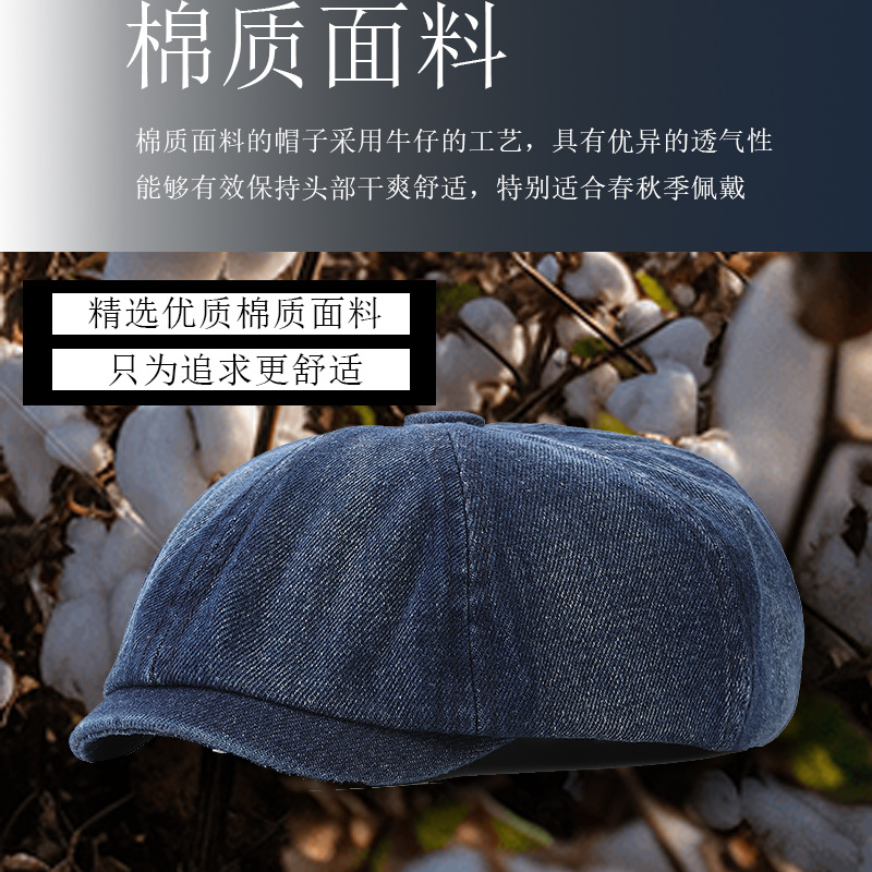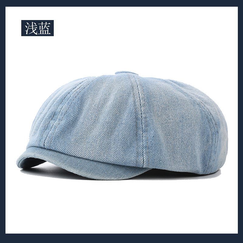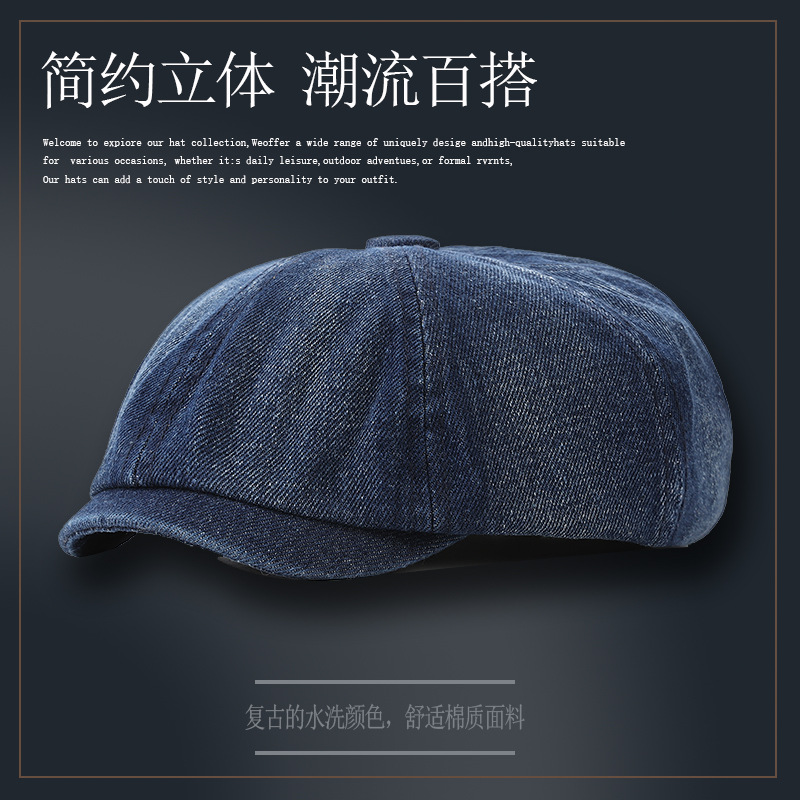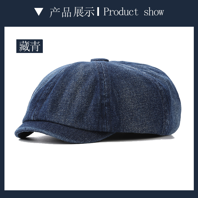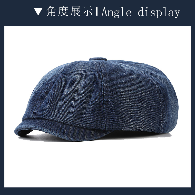 영국 스타일 데님 패브릭 팔각형 모자 남녀 공용 베레모 청소년용 캡 프리미엄 모자 도매 레트로 스타일스토어 가기