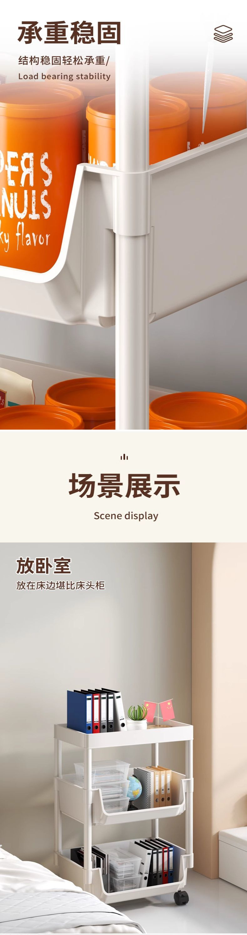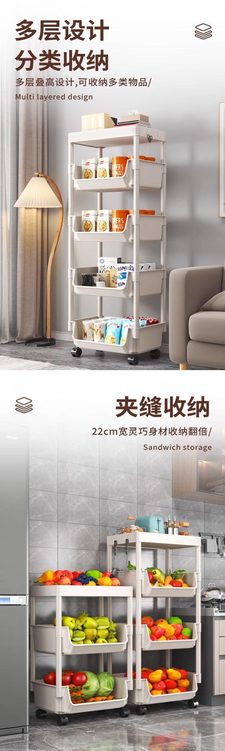 아기 제품 저장 랙 저장 캐비닛 아기 침대 옆 트롤리 바닥 모바일 다층 간식 장난감 공급 테이블스토어 가기