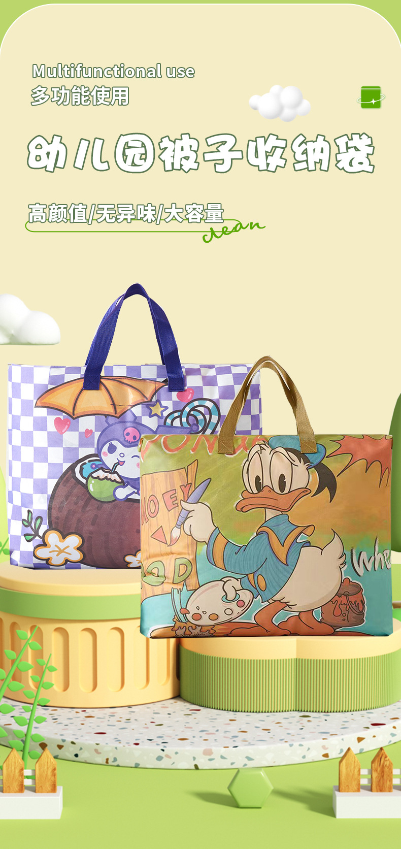 이불가방 부직포 이사짐가방 어린이 학생 이불가방 수납용 만화 지퍼 도널드덕 대용량스토어 가기