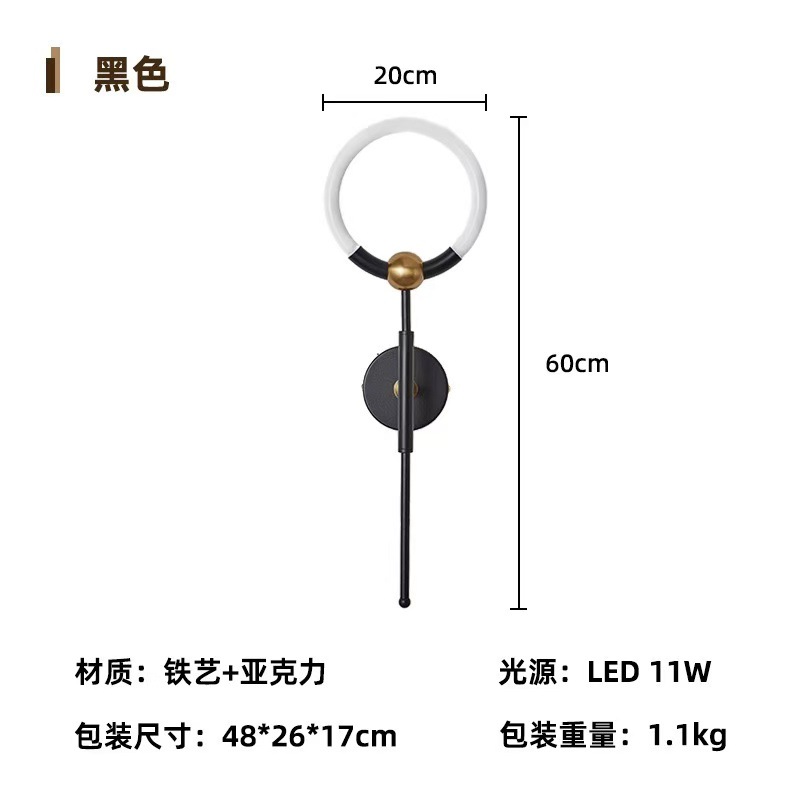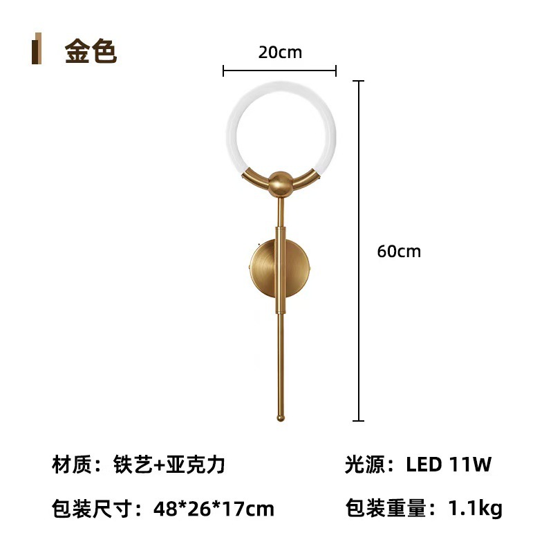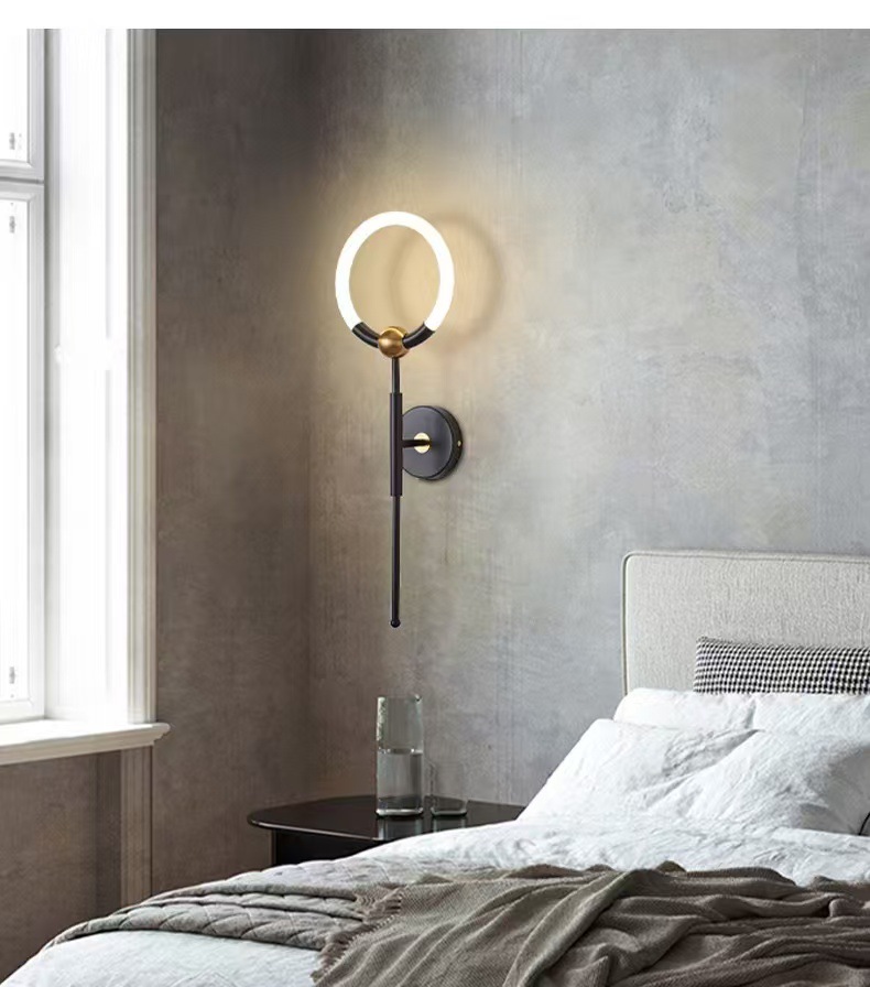 새로운 스타일의 벽 램프 호텔 객실 거실 침실 침실 통로 배경 벽 빛 럭셔리 고급 창조적 인 반지 Led 벽스토어 가기