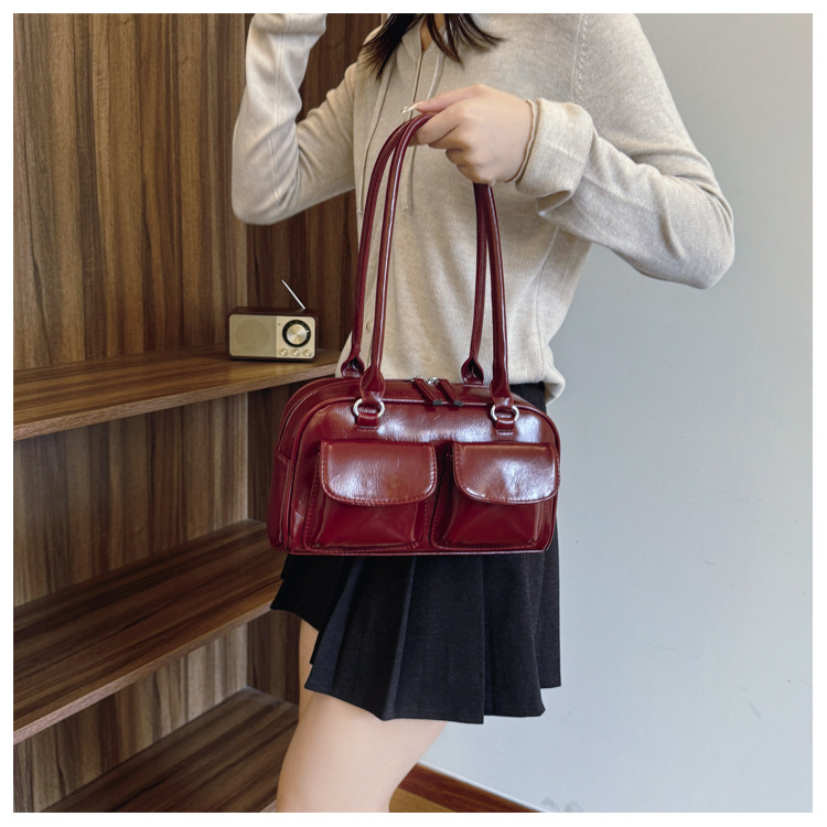 2024 년 새로운 가을과 겨울 패션 레트로 올 매치 한국 틈새 휴대용 베개 가방 여성 캐주얼 숄더 언더암 가방스토어 가기