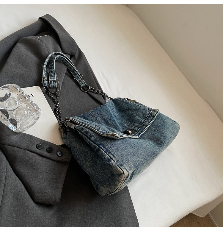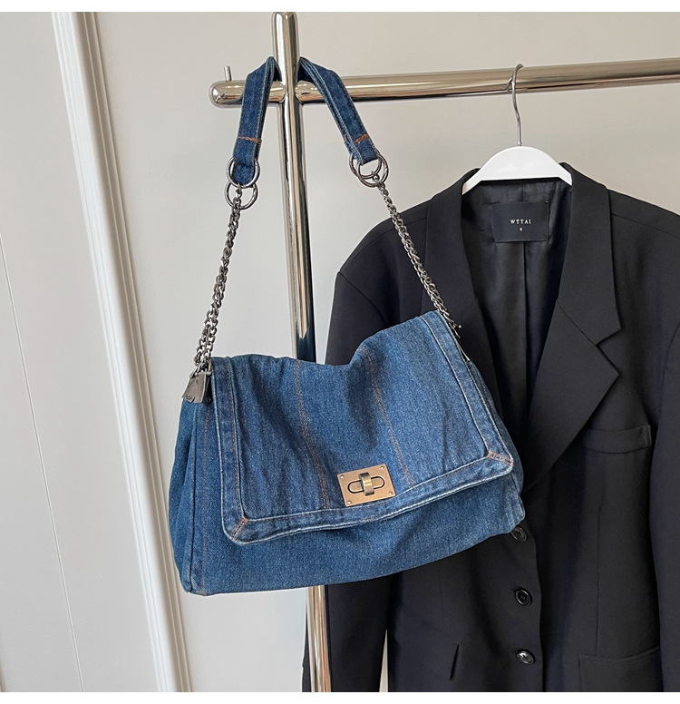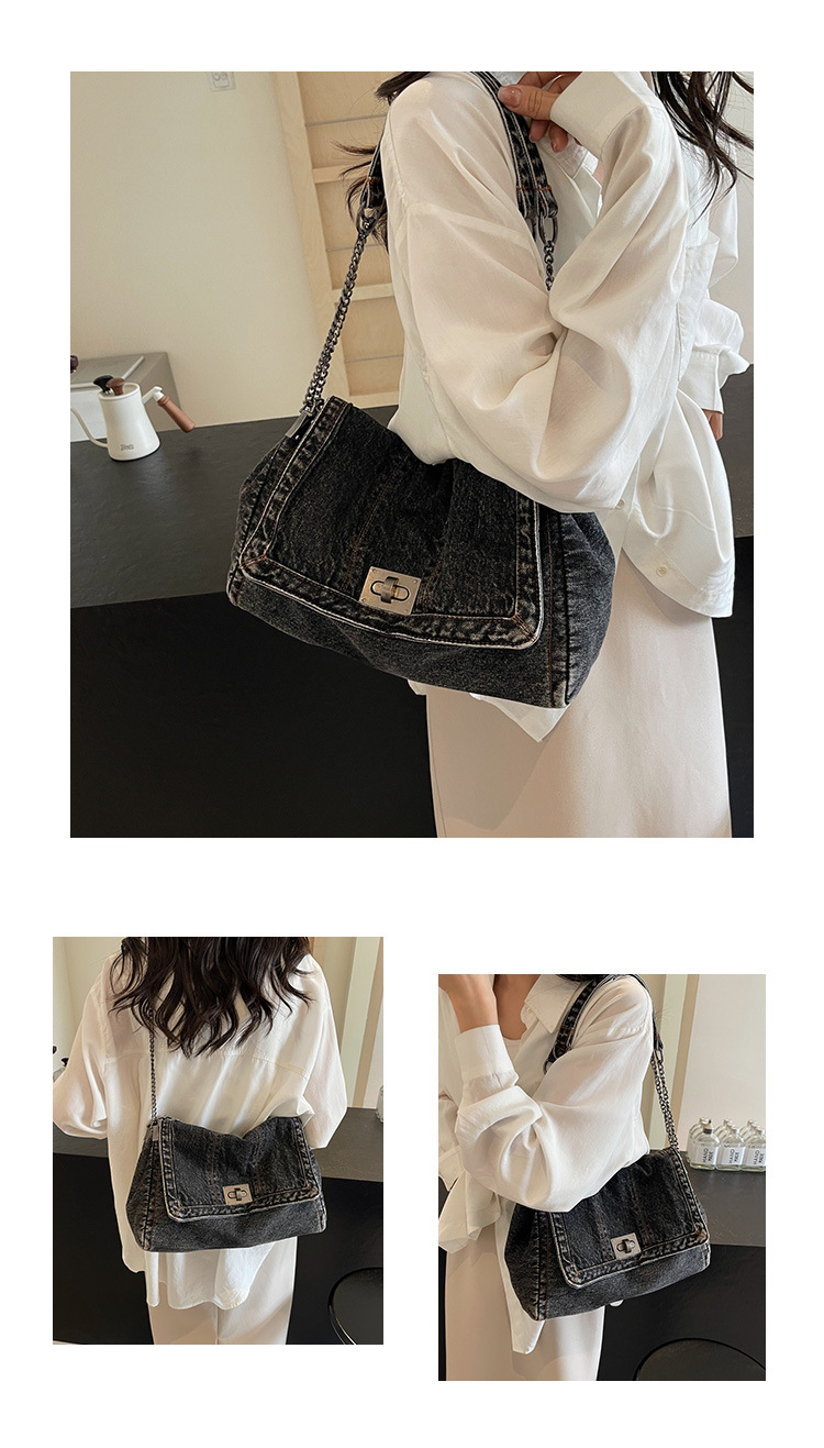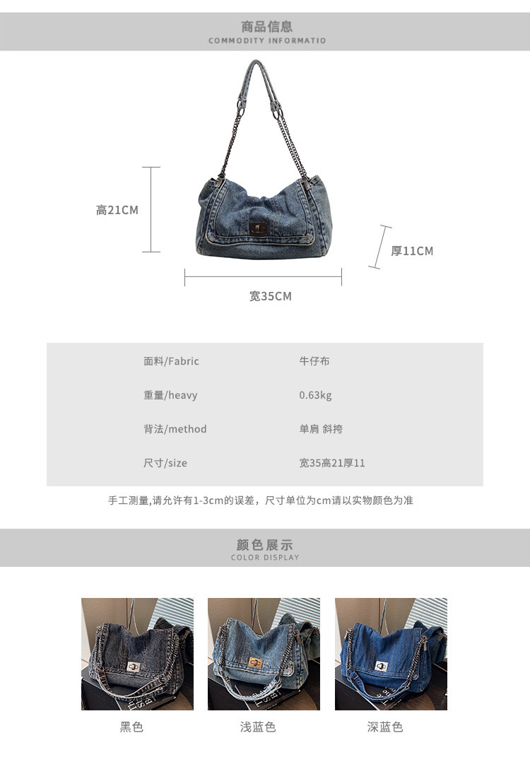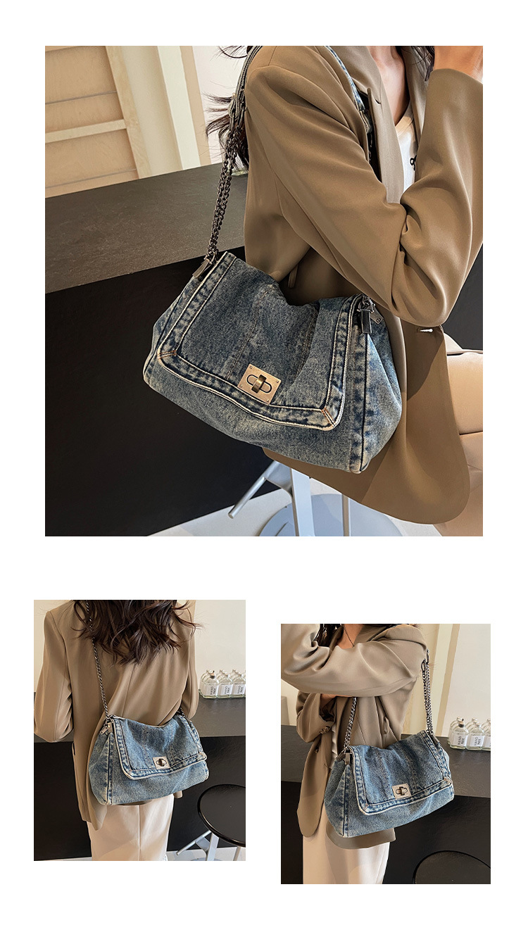 캐주얼 통근 대용량 데님 여성 가방 2025 새로운 다목적 체인 숄더 크로스 바디 백 토트 백