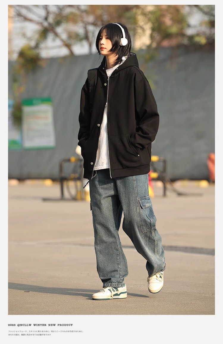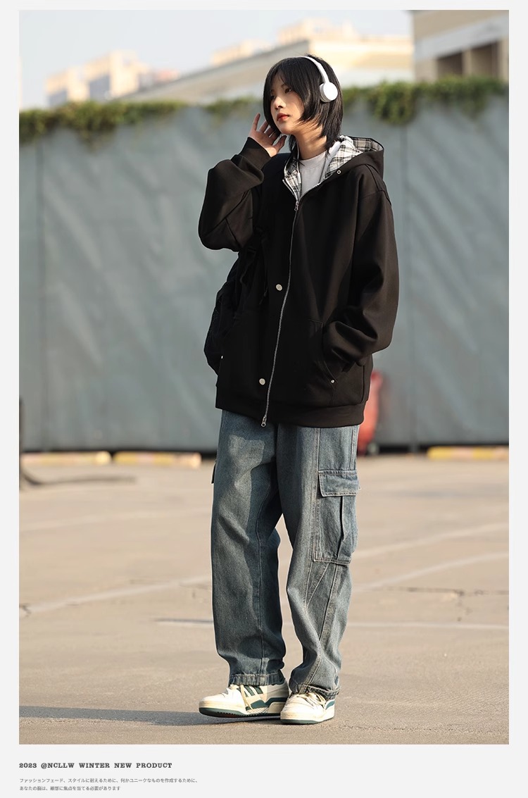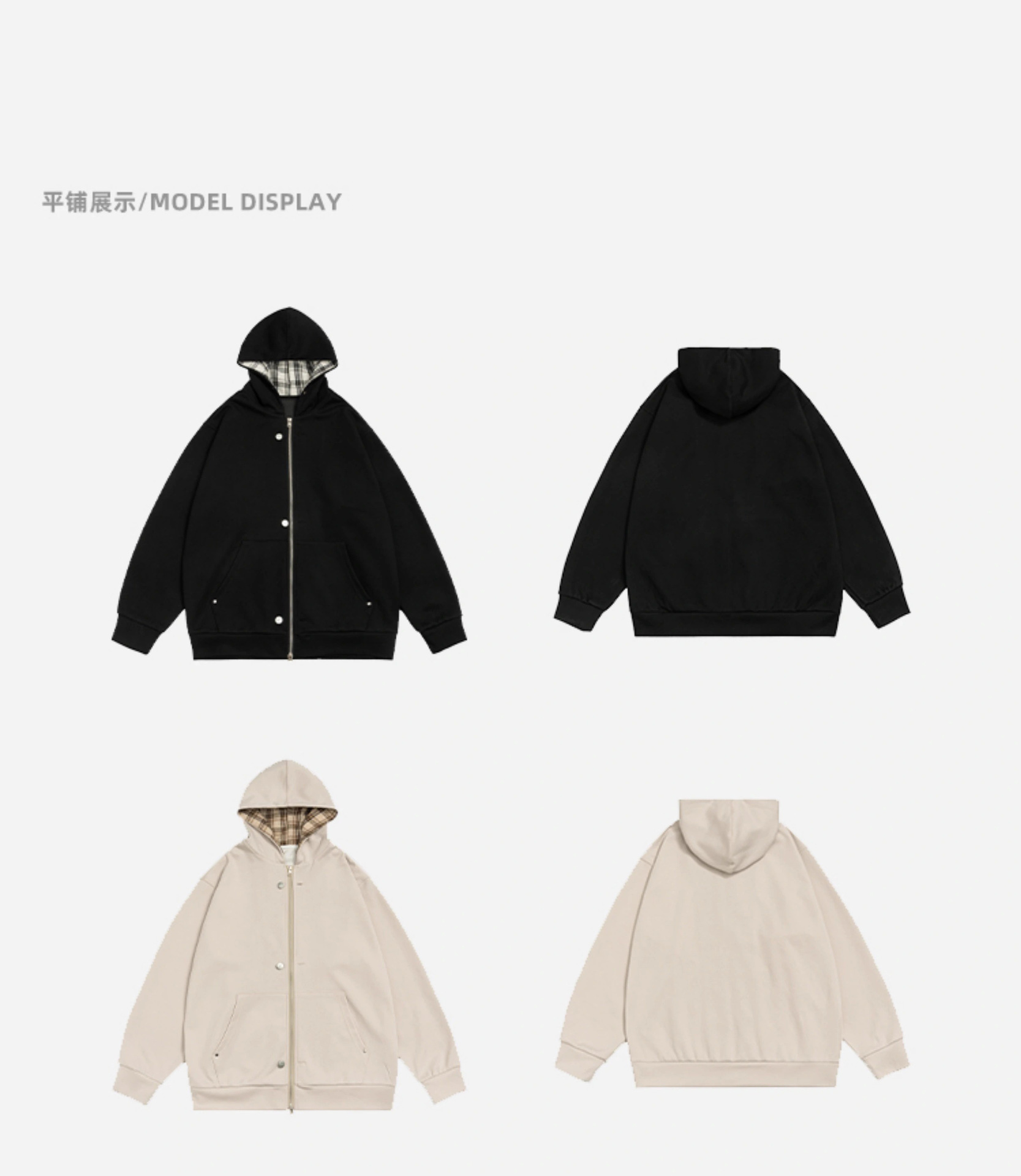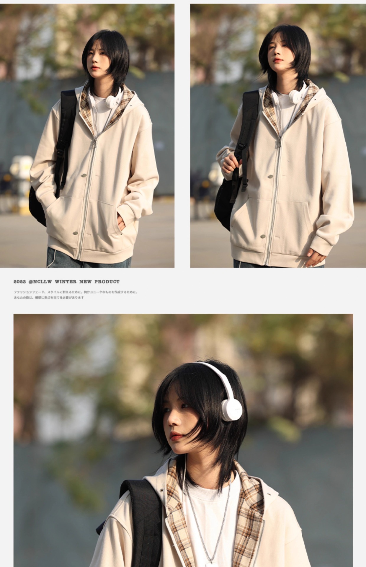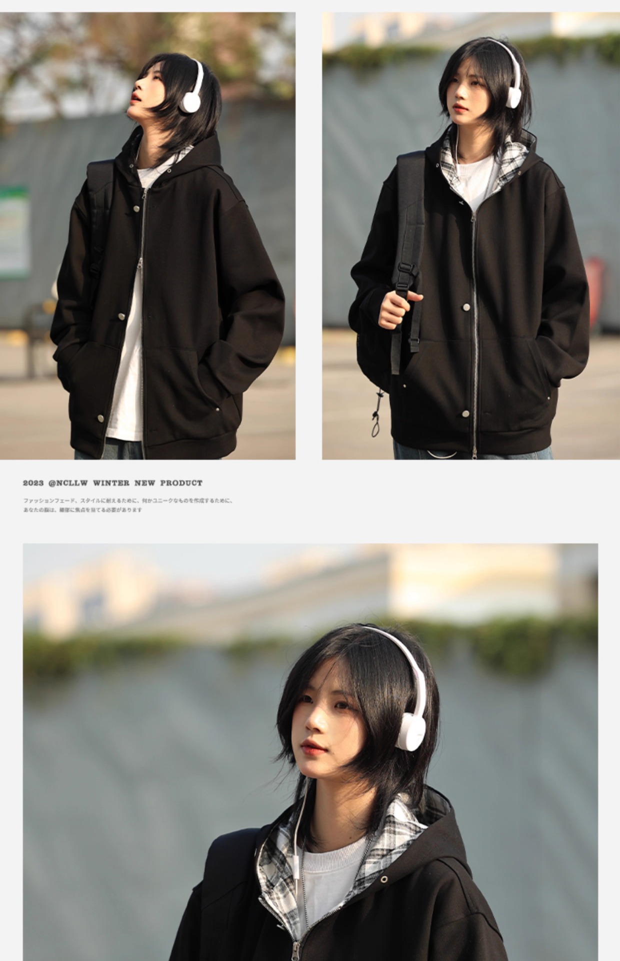 대비 컬러 격자 무늬 디자인 센스 후드 카디건 스웨터 남성 봄과 가을 2024 새로운 일본 캐주얼 느슨한 재킷 탑스토어 가기