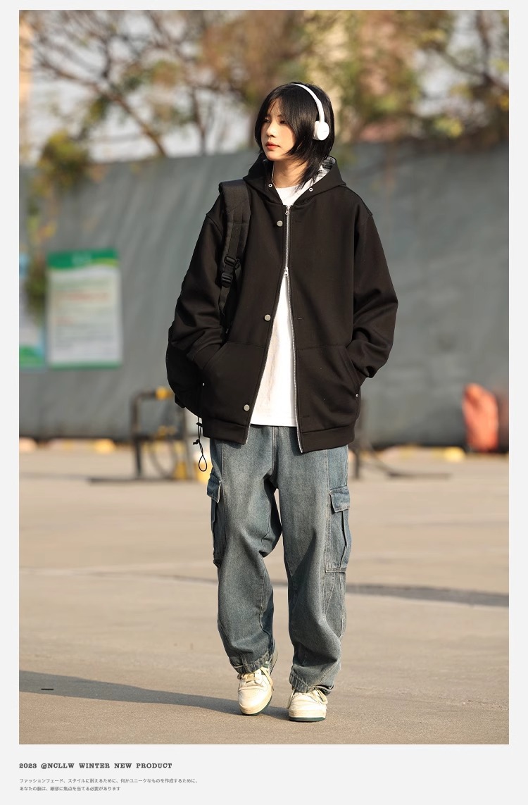 대비 컬러 격자 무늬 디자인 센스 후드 카디건 스웨터 남성 봄과 가을 2024 새로운 일본 캐주얼 느슨한 재킷 탑