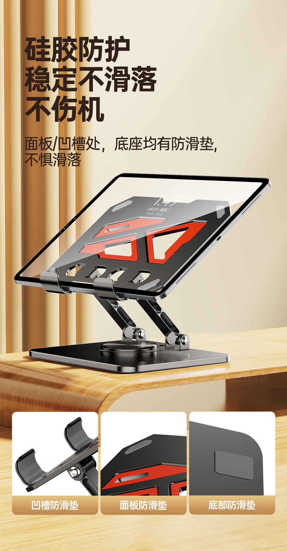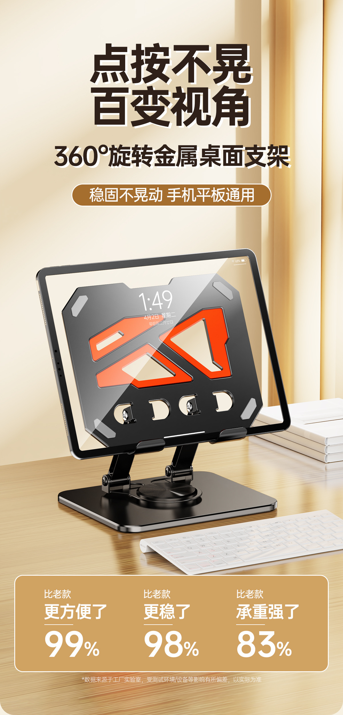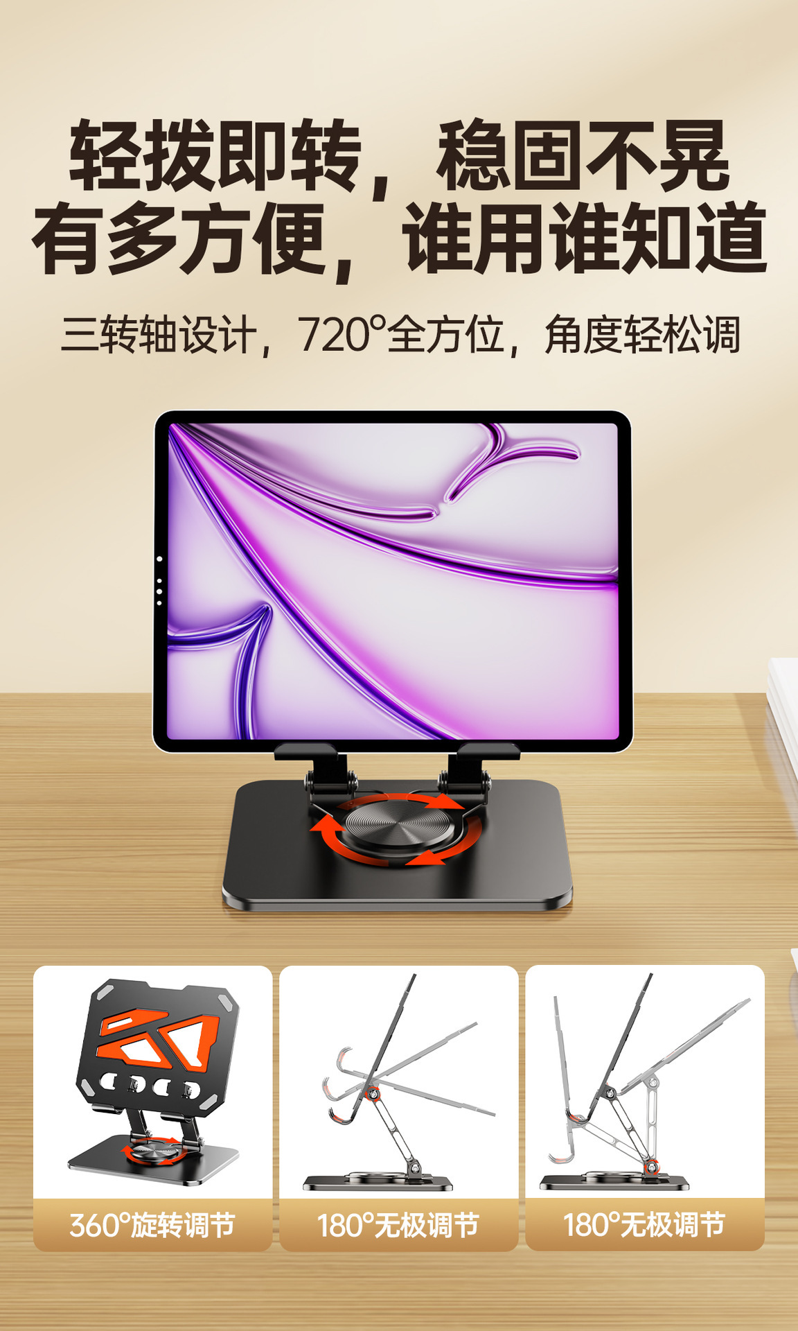 올메탈 컬러블록 데스크탑 회전형 태블릿/노트북 거치대 720 ° 다방향 조절 가능